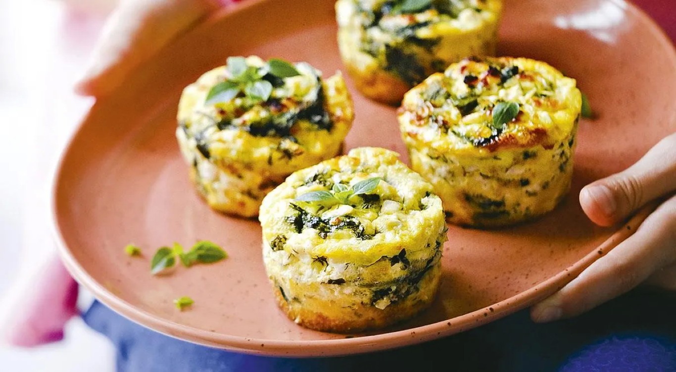 Miniatiūrinės fritatos su varške ir špinatais