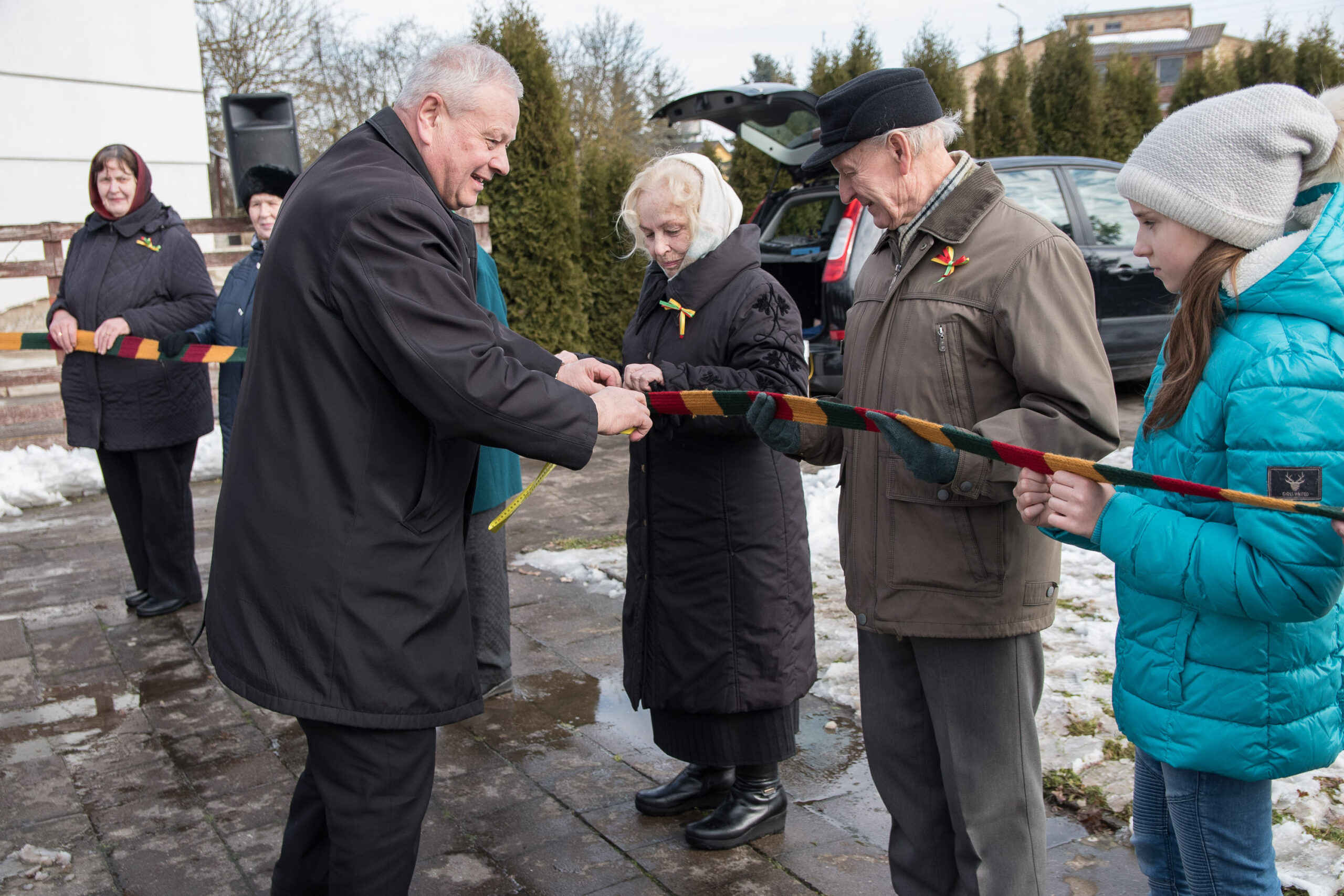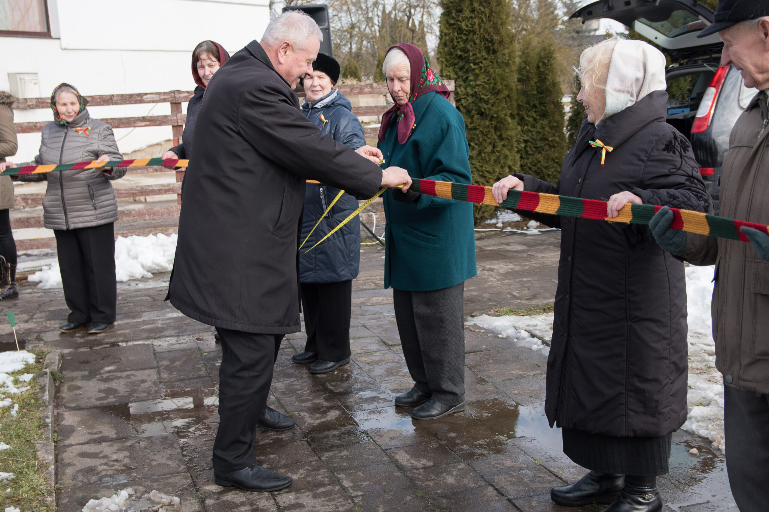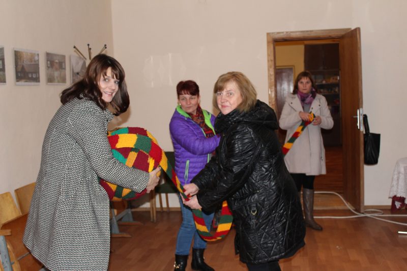 „Keista, kad atėjo net ir tie, kurie nesilankydavo mūsų miestelio renginiuose. Būdavo, sėdi per naktį, kuri šventei scenarijų ir sulauki saujelės žiūrovų. O šį kartą visiems buvo įdomu, kiek pavyko numegzti. Šaliku apjuosėme visą savo miestelio centrinę aikštę“, – sakė Jovita, kuri dažnai organizuojant renginius talkina savo vyrui Virgiui, Tiltagalių kultūros centro Geležių padalinio vadovui.