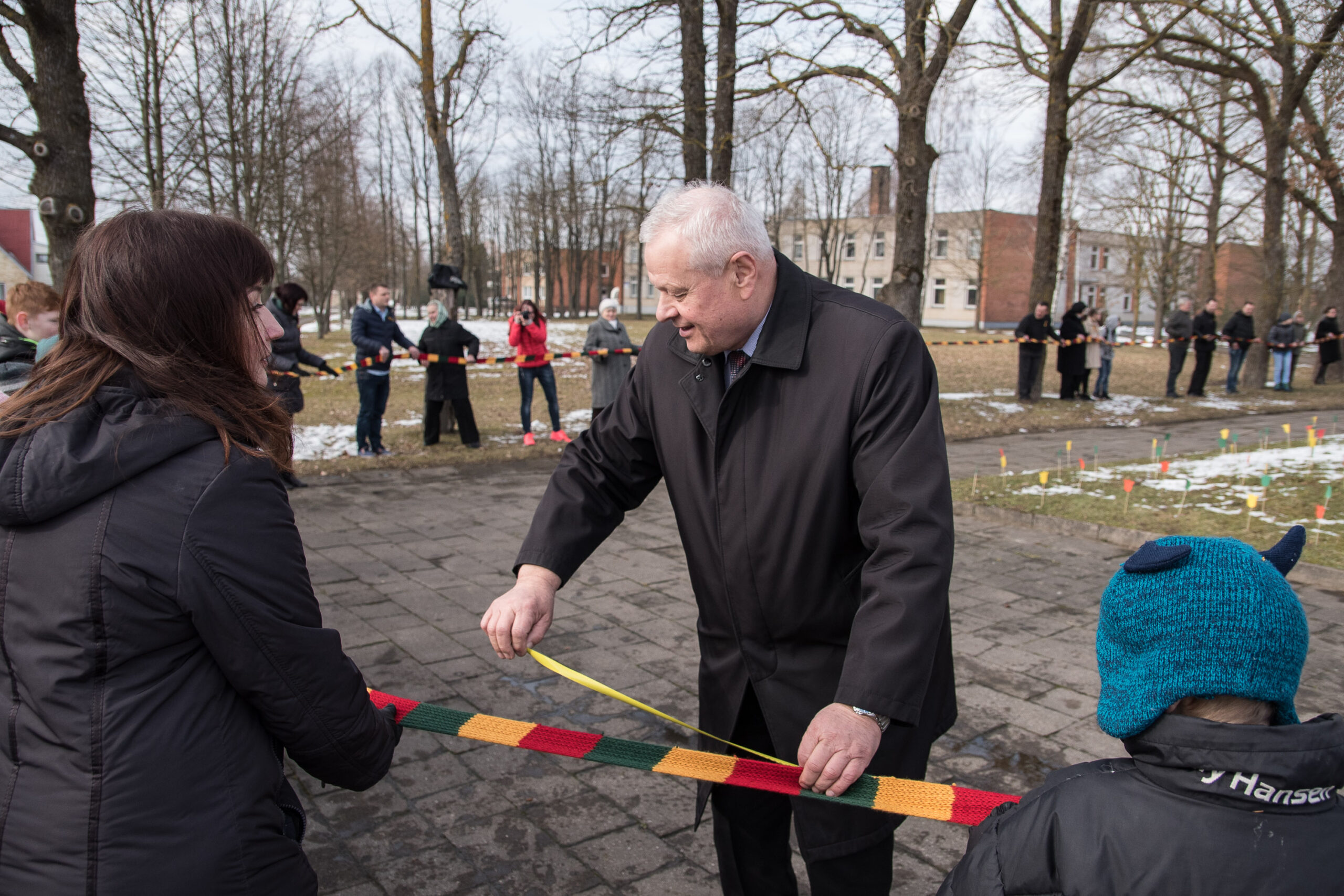 „Žiūrint į mezginį galima pastebėti, jog į jį sumegzta įvairių atspalvių trispalviai siūlai. Taip pat matosi ir mezgimo stilių skirtumai – vienų raštas tvirtesnis, kitų minkštesnis. Gal dėl to šalikas net ir gražesnis – juk kiekviena šeima į mezginį sudėjo savo šilumos, nuotaikos kruopelytę“, – kalbėjo mezgėjos.