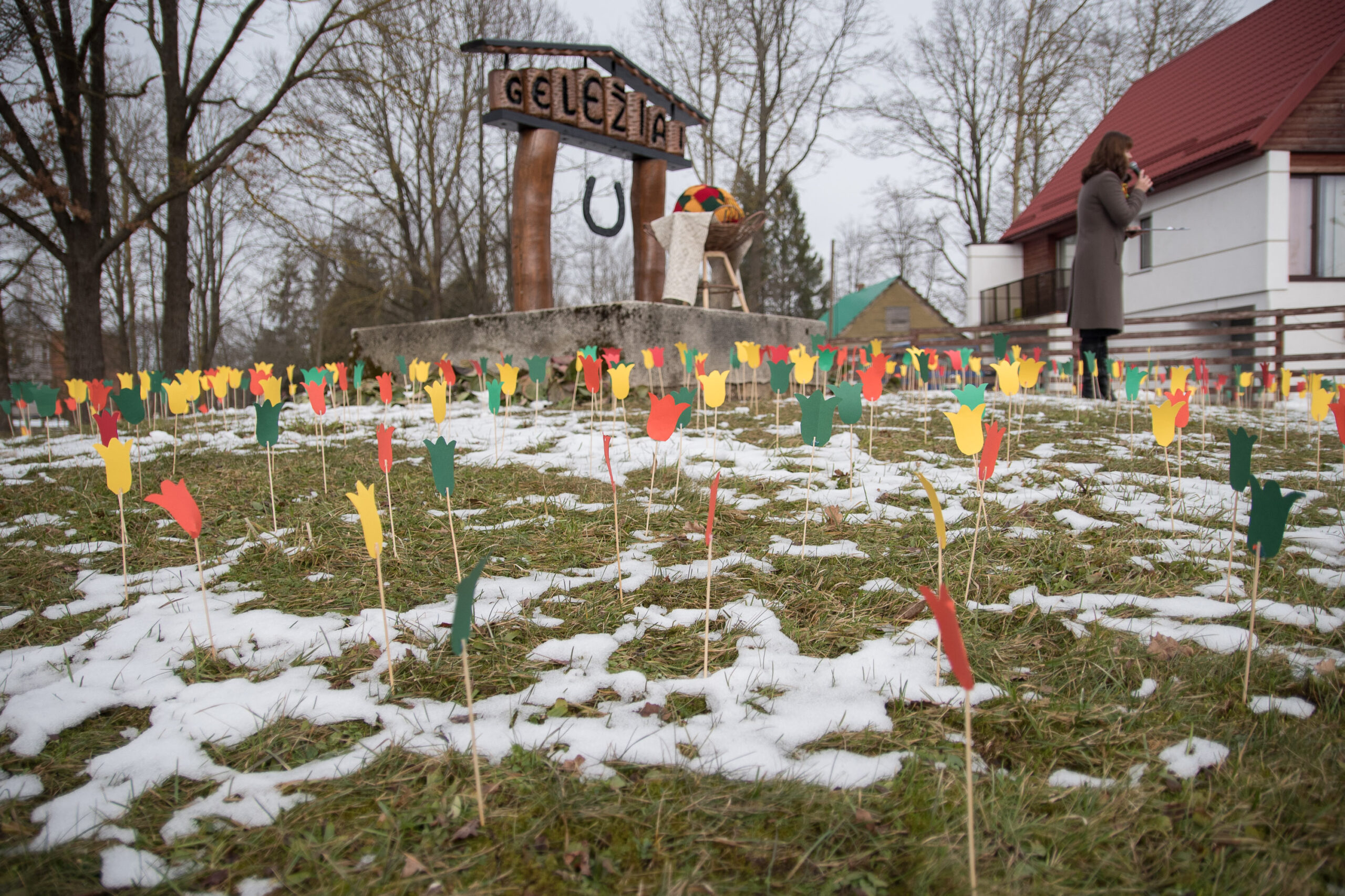 Geležių kaimo gyventojai paskutinį mėnesį rečiau vaikščiojo į renginius, biblioteką ir net parduotuves – visas miestelis turėjo darbo. Pagauti azarto geležiečiai iki kovo 11-osios pasiryžo numegzti patį ilgiausią Lietuvoje šaliką, papuoštą valstybinės vėliavos spalvomis.