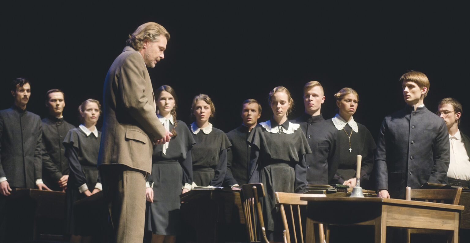 Ir visai nenuostabu, kad šiaip jau retokai profesionalų scenoje statomo „Atžalyno“ šiandien ėmėsi Lietuvos nacionalinis dramos teatras (LNDT), – bene vienintelė mūsų šalies scenos menų institucija, turinti blaiviu protu ir konceptualia logika pagrįstą meninę strategiją, – ir šį darbą paskyrė režisieriui Jonui Vaitkui bei daugiausia iš įvairių kartų jo mokinių suburtai aktorių komandai. Manyčiau, kruopščiai mezgamame šiandienio LNDT repertuaro voratinklyje naujasis „Atžalynas“ galėjo tematiškai įsiterpti tarp Oskaro Koršunovo režisuotos „Katedros“, to paties J. Vaitkaus „Visuomenės priešo“ (individo ir visuomenės, tiesos ir melo, laisvės ir tarnystės priešprieša) ir gan prieštaringai publikos bei teatro profesionalų sutiktos „Mūsų klasės“, kurią režisavo Yana Ross (jauno žmogaus likimas, susidūrus su jį užgriūvančiomis istorinėmis aplinkybėmis).