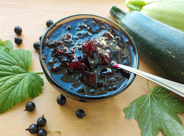 Reikės: 2 kg cukinijų, 1 kg juodųjų serbentų, 2 kg cukraus.