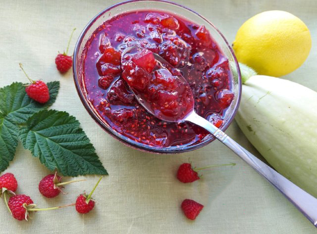 Reikės: 2 kg cukinijų, 1 kg aviečių, 2 kg cukraus, 2 nedidelių citrinų.