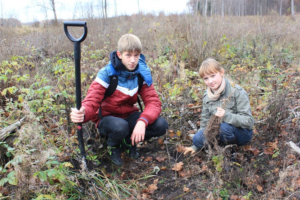 Jis pamokė, kaip reikia sodinti mažus medelius. Atidžiai klausėme ir stebėjome, nes mūsų laukė užduotis – kiekviena mokinių pora privalėjo pasodinti po 50 sodinukų. Į išartą vagą sodinome gležnus daigelius. Pasidarbavę gerą valandą pasodinome 300 medelių. Nors  pavargome, bet buvome laimingi – juk mūsų pasodintais ąžuoliukais galės gėrėtis ateinančios kartos…