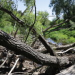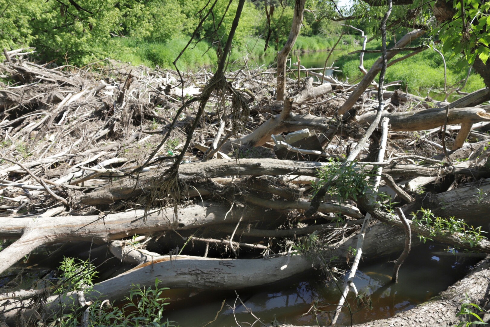 Pasibaigus pavasario polaidžiui, kone šimto metrų upės atkarpa ties Berčiūnais liko užtverta vandens tėkmės išverstais pakrantės medžiais.