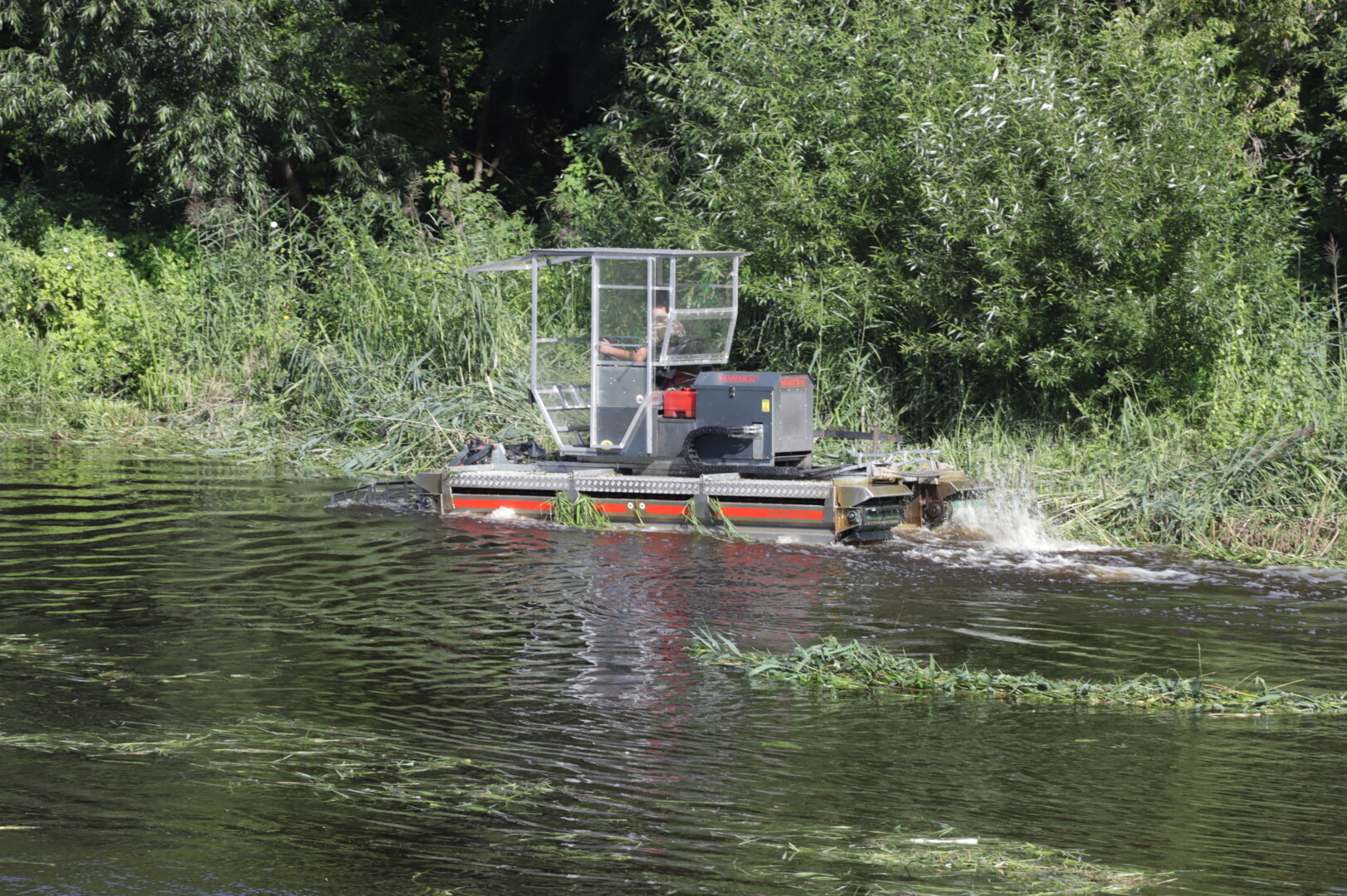 Turėję Nevėžį pradėti šienauti šią savaitę, amfibijų laivavedžiai darbo imsis kiek vėliau. P. Židonio nuotr.