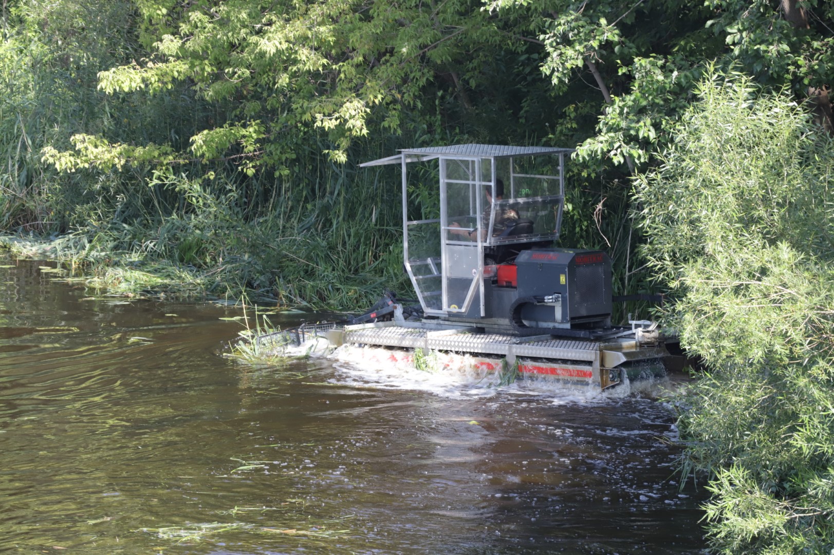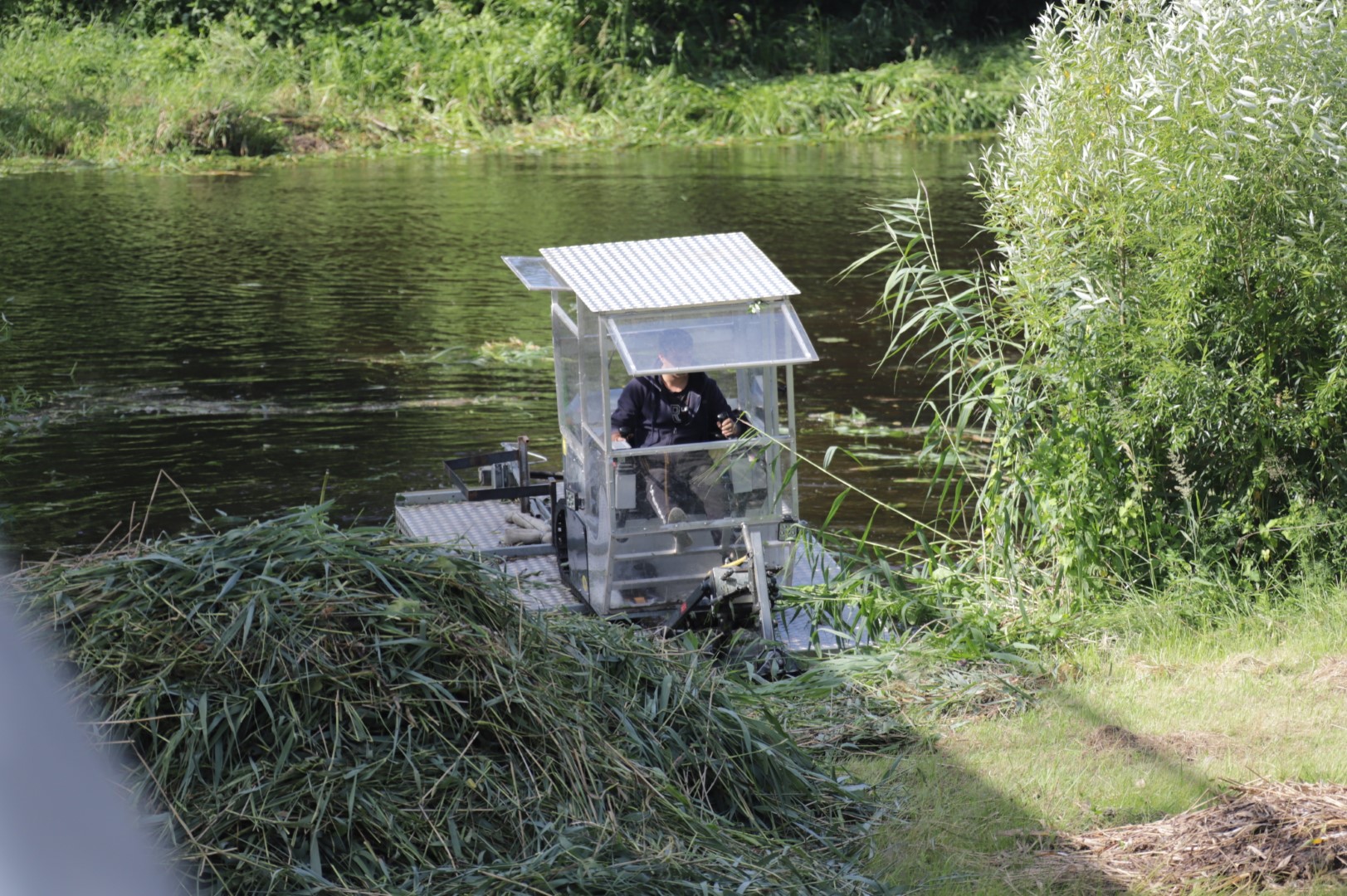 Tą patį patvirtino ir Nevėžį šienaujantis bendrovės „Marijampolės švara“ atstovas, amfibijos laivavedys Tadas Žukauskas.