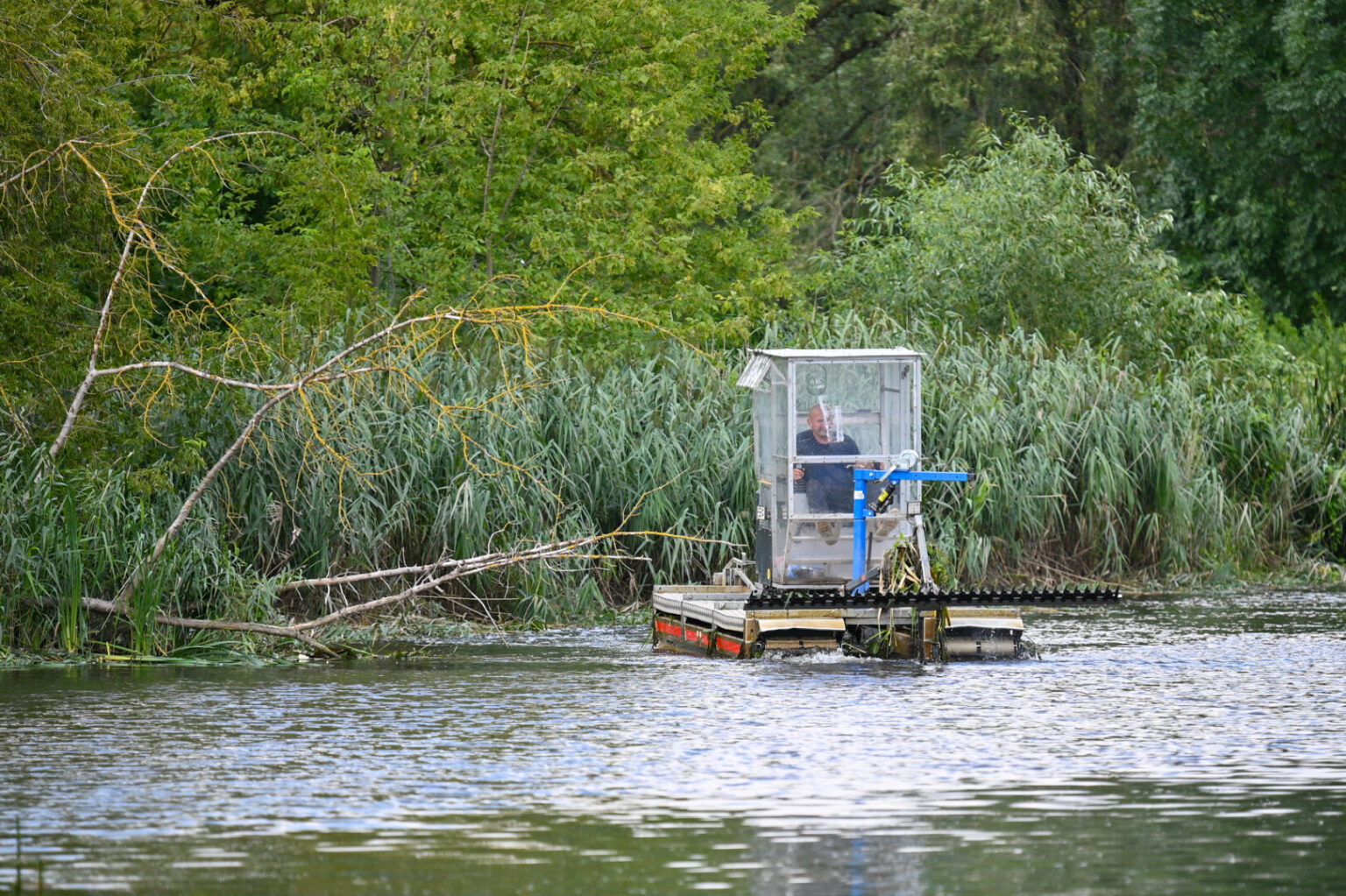 Šiuo metu dirbančią pjovėjų amfibiją galima pamatyti plaukiojančią nuo Kultūros ir poilsio parko iki Stoties gatvės tilto.