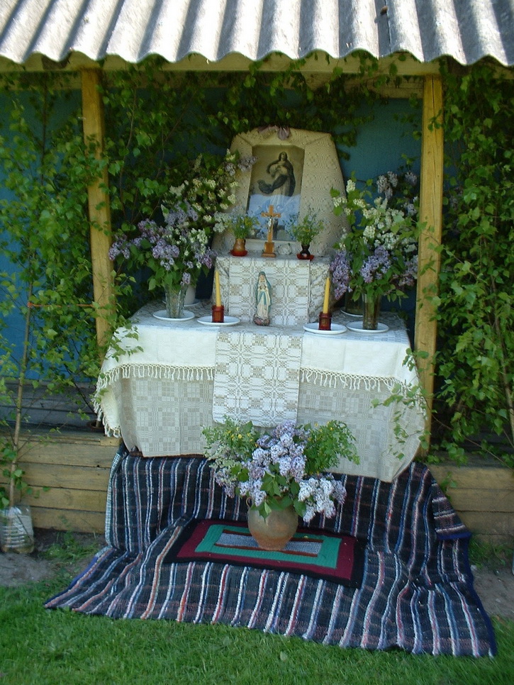 Tuose namuose ar jų kieme, pavėsinėje būdavo įrengiamas altorėlis su Marijos skulptūra ar jos paveikslu. Ir kaip gražiai tas altorėlis būdavo puošiamas – gėlėmis, šakelėmis, girliandomis.