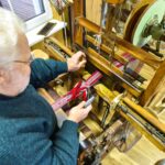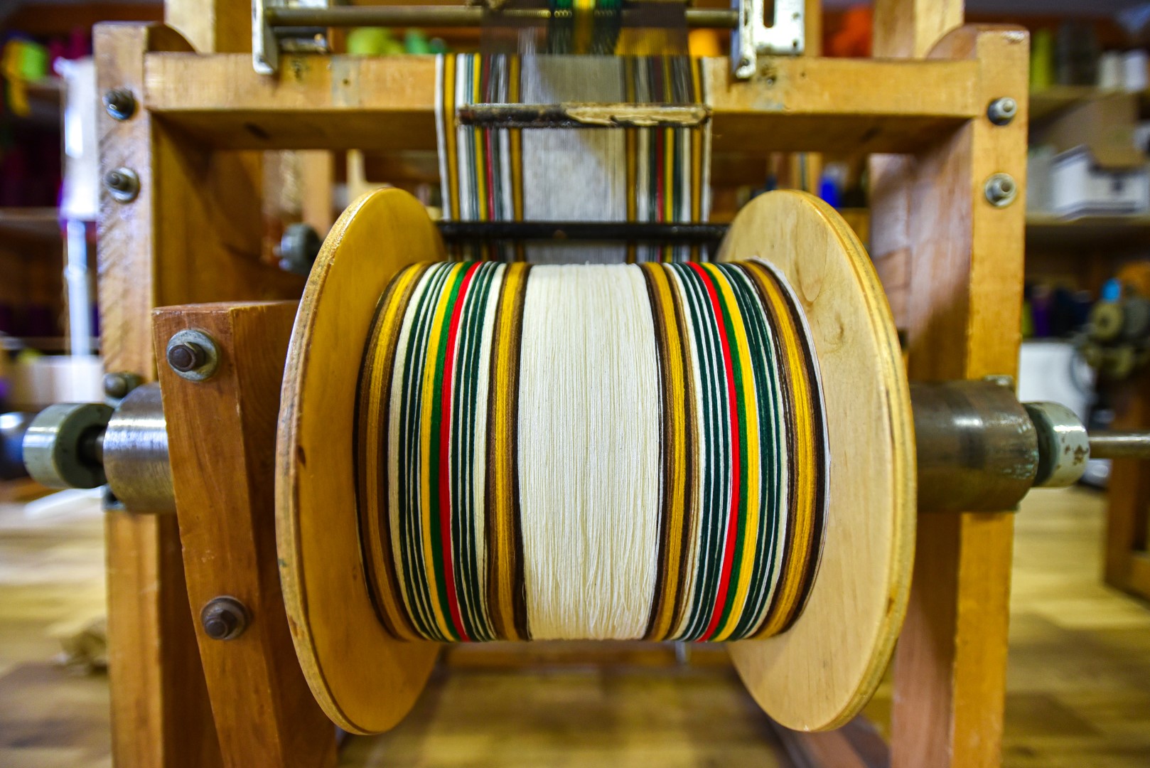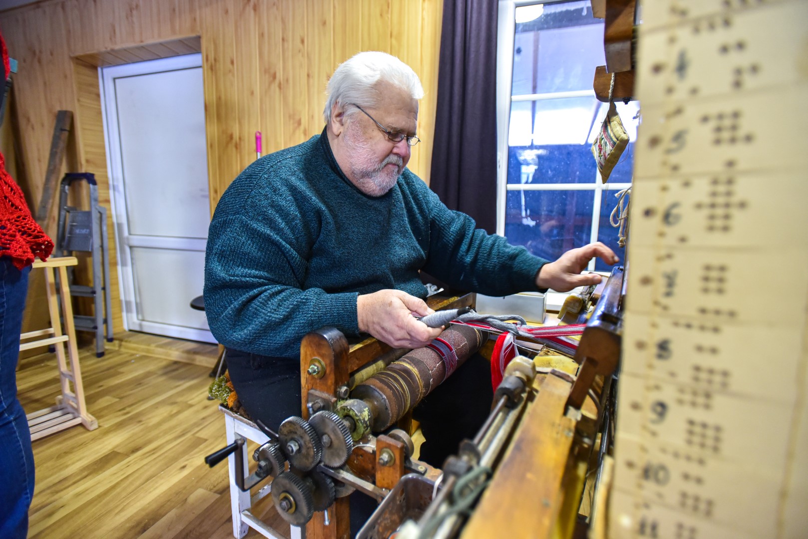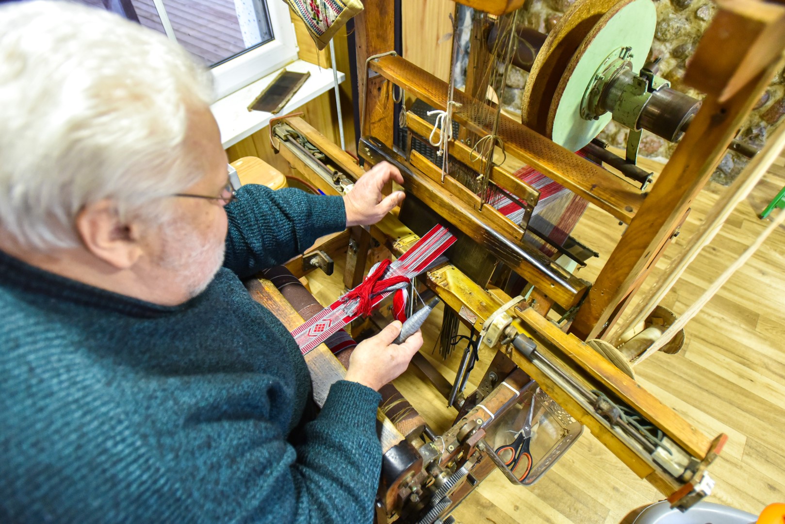 Vyrui Algirdui dažnai tenka darbuotis su siūlais – ilgas, kartais nuobodus tai darbas, bet be jo, taip pat be kruopštaus staklių paruošimo, jų užtaisymo iki audimo neprieisi.