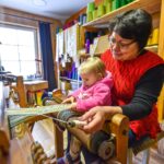 Kol mažoji anūkėlė Luknė dar tik apžiūrinėja, kas čia tas kasdien dundantis daiktas, dar tik stebi spalvingų siūlų judėjimą, vienomis staklėmis audžia pati Violeta, kitomis – jos vyras Algirdas Salikas, trečiomis – jų dukra Urtė Salikaitė-Pranckūnienė, Luknės mama.