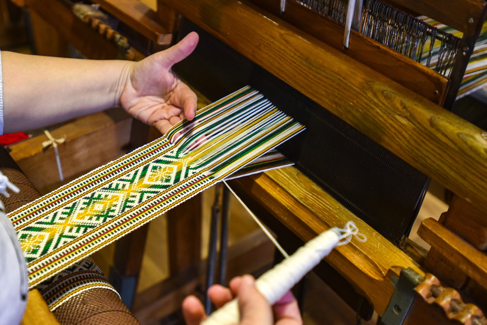 Mamai ir dukrai labiausiai patinka austi vardines juostas, kaklaraiščius, nes tai įdomesnis, nemonotoniškas darbas.