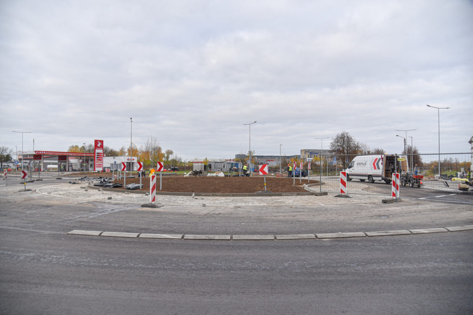 Spūstys turėtų sumažėti ir Smėlynės gatvėje. Ties Šiaurine ir Smėlynės gatvėmis įrengiamoje žiedinėje sankryžoje vakar planuota asfaltuoti pagrindą.
