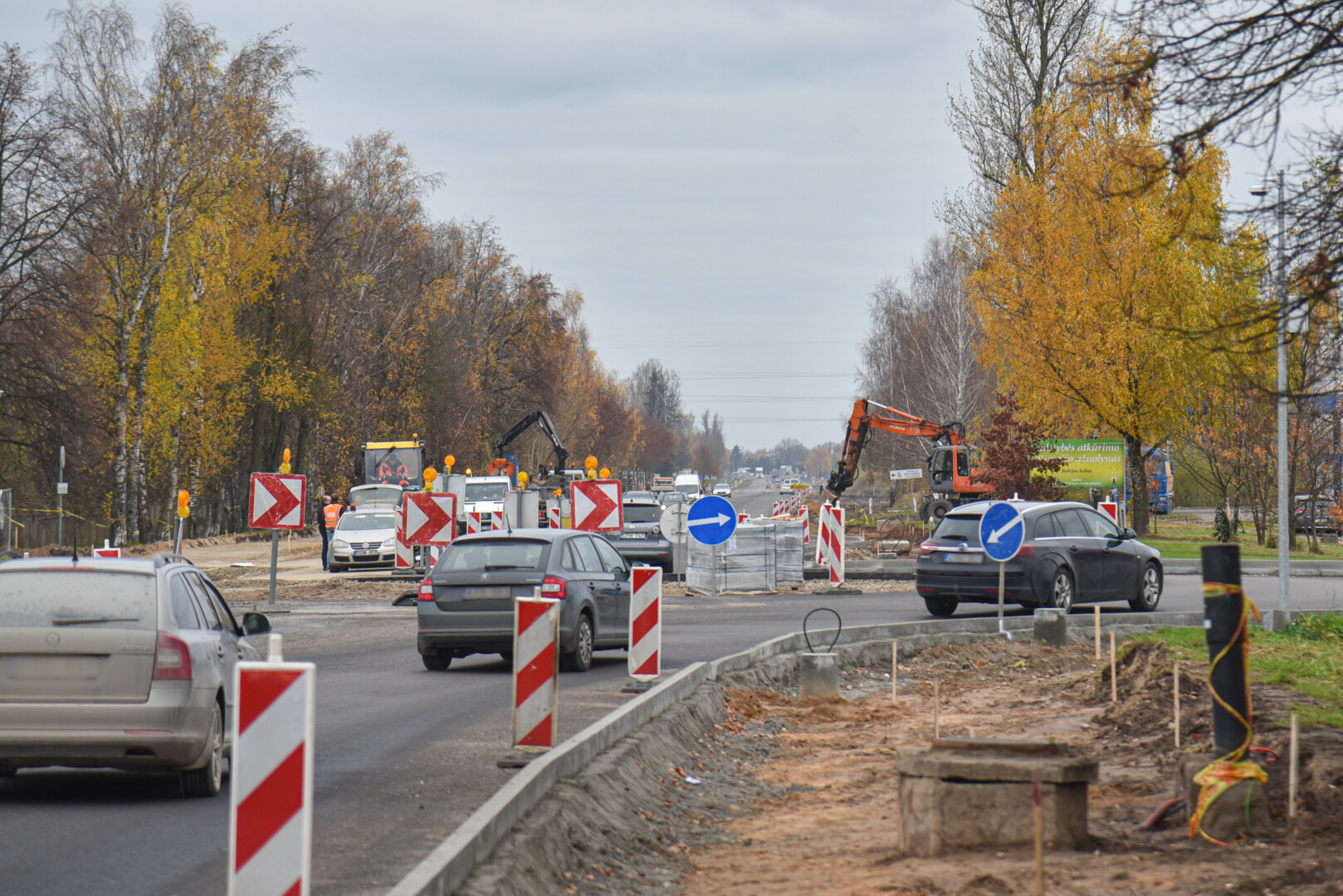 „Oro sąlygos truputį koreguoja darbų grafiką, bet tikimės, kad iki lapkričio pabaigos bus paklotos asfalto dangos ir vairuotojai galės naudotis gatve, o su pėsčiųjų ir dviračių takais žiūrėsime, kaip pasiseks“, – sako D. Linkonas.