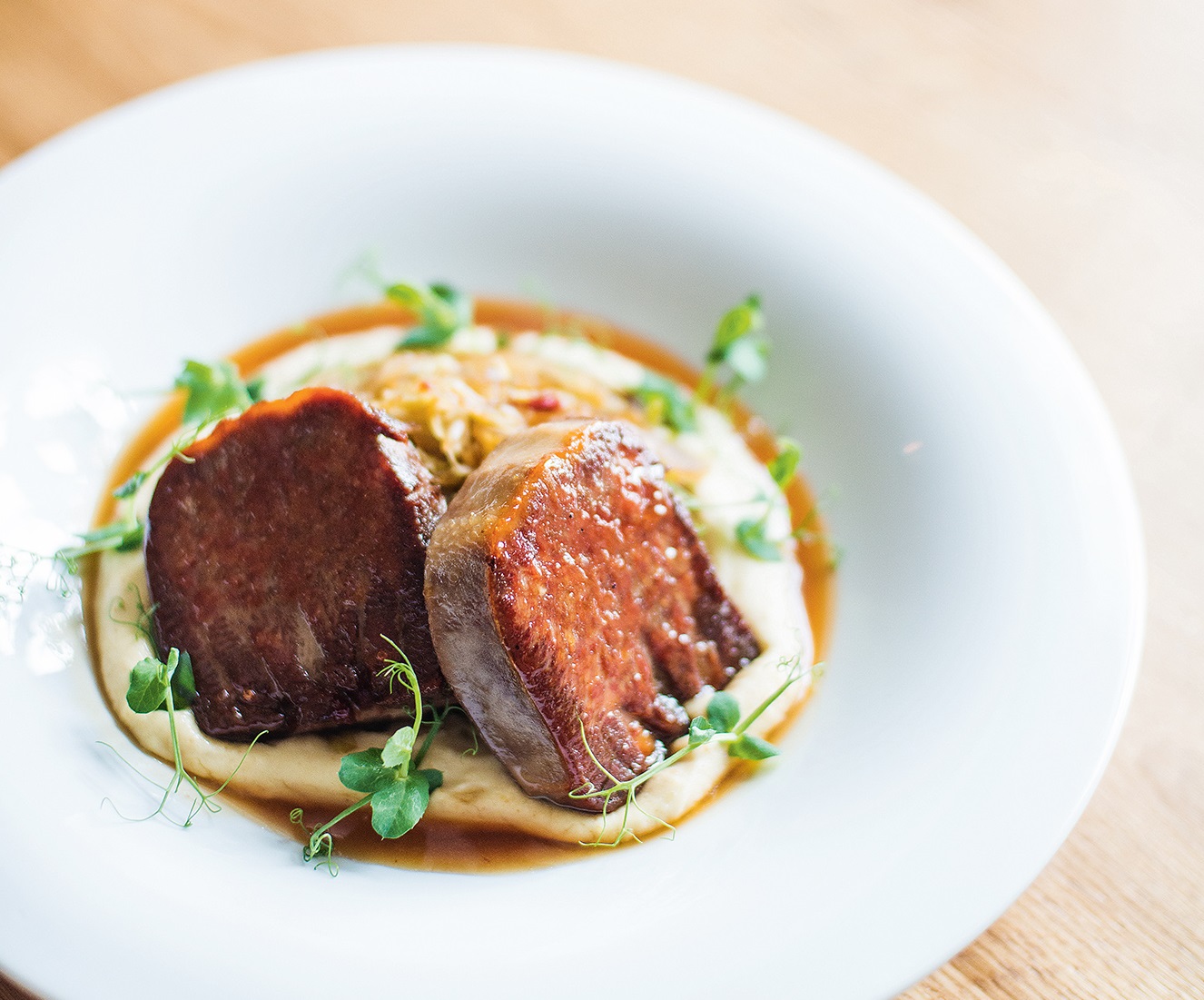 Iš mėsos subproduktų dabar restorano valgiaraštyje galima rasti pažandę ar kaip pagrindinį patiekalą patiekiamą jaučio liežuvį su karamele. D. Aleksiejevas juokiasi, kad iš pradžių klientai šį pasiūlymą vertino atsargiai, nes dauguma liežuvį valgo kaip šaltą užkandį, bet įprato ir grįžta.