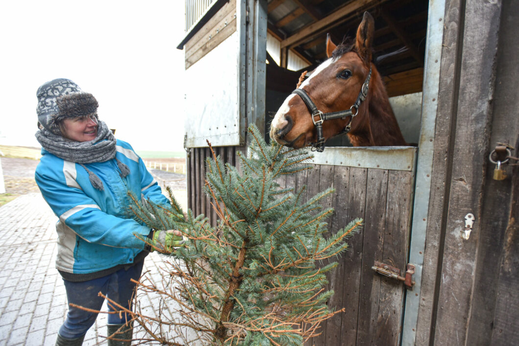 Molainių žirgyno, kuriame šiuo metu gyvena aštuoni žirgai, savininkė Daiva Zavadskienė pasakoja jau sulaukianti vežamų kalėdinių eglučių. Pačią pirmąją gavo netgi prieš Kalėdas. Vienas vaikų darželis mažiesiems anksčiau surengė šventę ir nebelaikė papuošto medelio – atvežė jį žirgams.