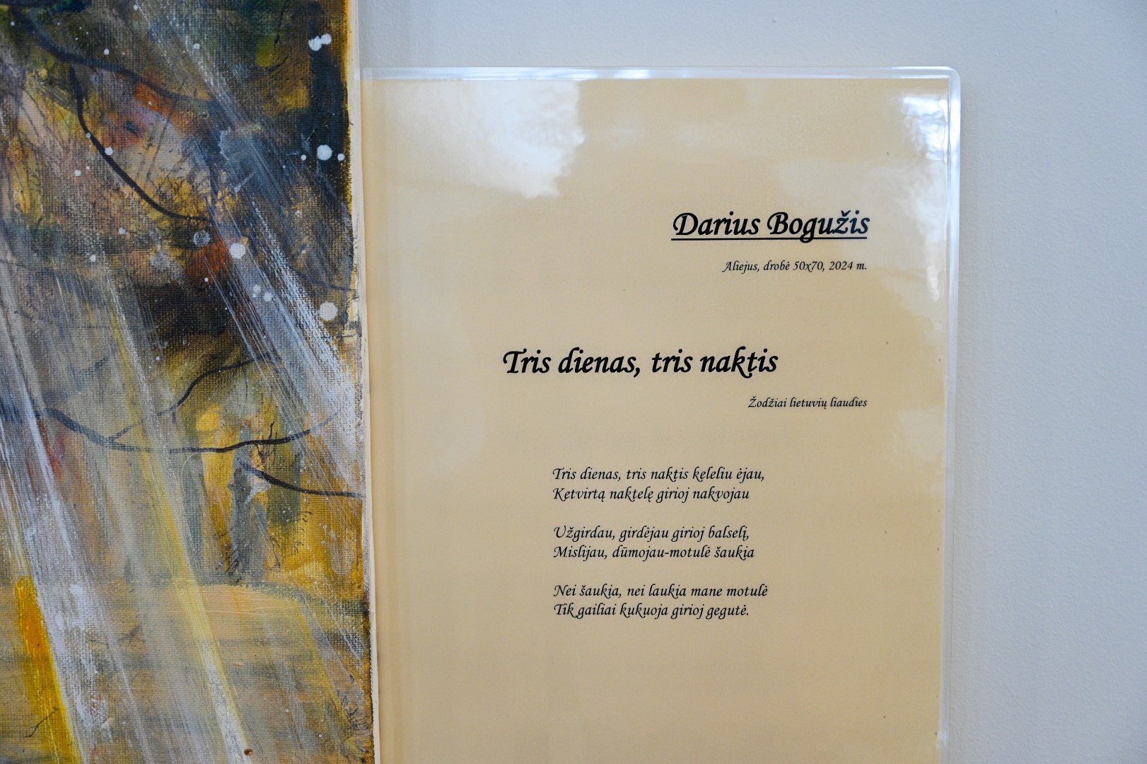 Kokia daina ir kurie posmai nutapyti, parodos lankytojams sužinoti patogu ir paprasta – šalia paveikslų pateikti žodžiai, tad žiūrovai gali palyginti savo interpretaciją su pavaizduota tapytojo.