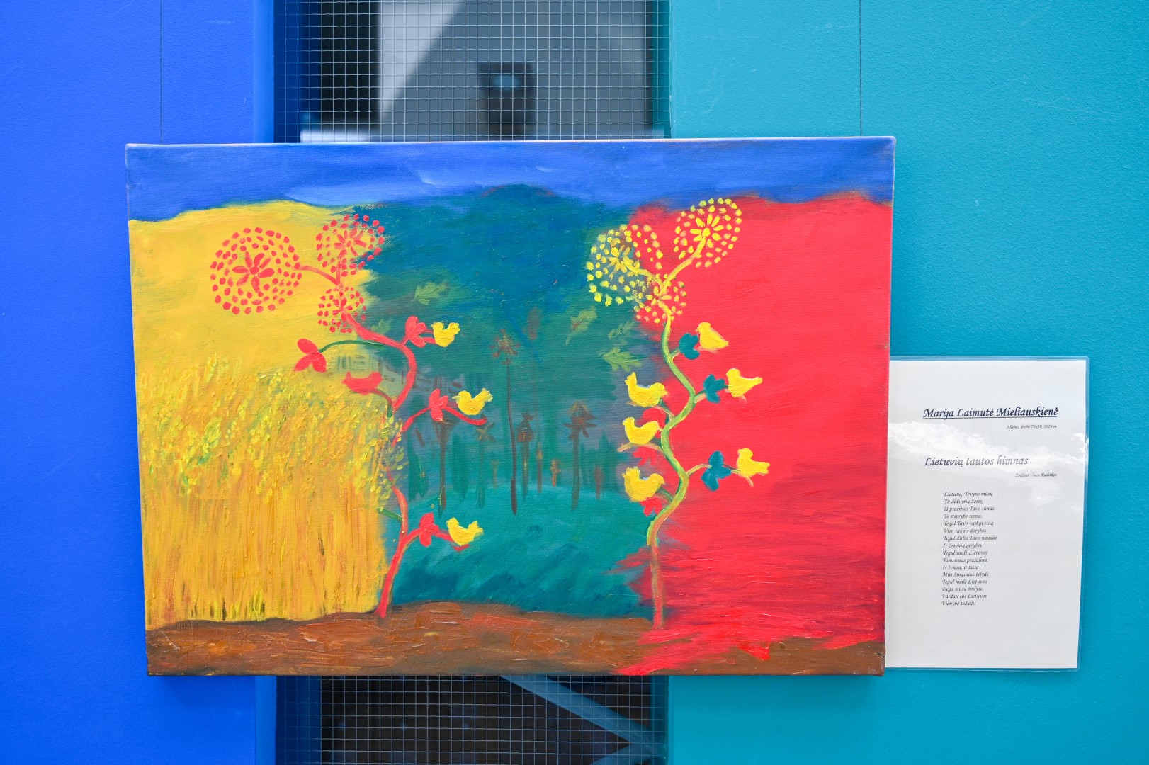 Kaip atrodo nutapyta „Tautiška giesmė“? O kokių spalvų populiari lietuvių liaudies daina „Šalia kelio karčema“?