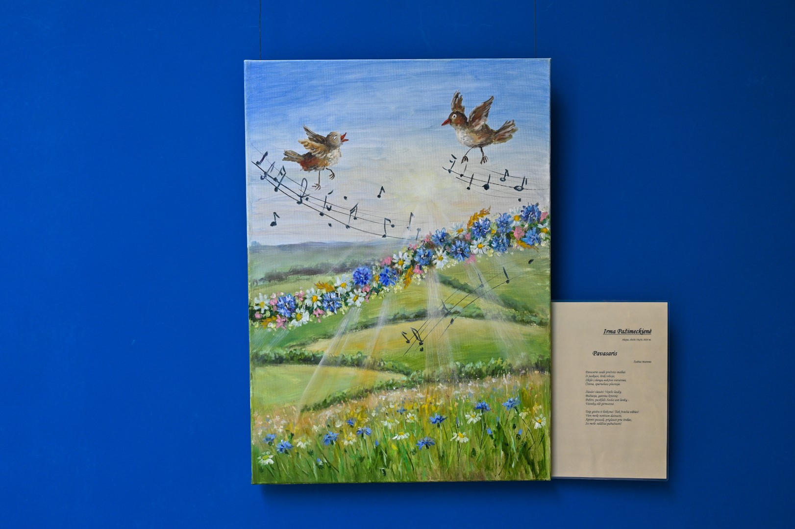 „Tautodailininkai patys rinkosi dainas, kurios taps paveikslais. Dažniausiai vaizdu pavertėme ne visą kūrinį, o kelis jo posmus (yra daina, šių turinti net 28!). Visgi yra tapybos darbų, sutalpinusių visą dainą. Parodoje kartojasi tik du kūriniai – „Pavasaris“ ir Lietuvos himnas. Ypač džiaugiuosi pastarąjį įprasminusių rokiškėnių drąsa – tai buvo tikras iššūkis, kurį, manau, moterys įveikė“, – sako J. Butkevičiūtė.