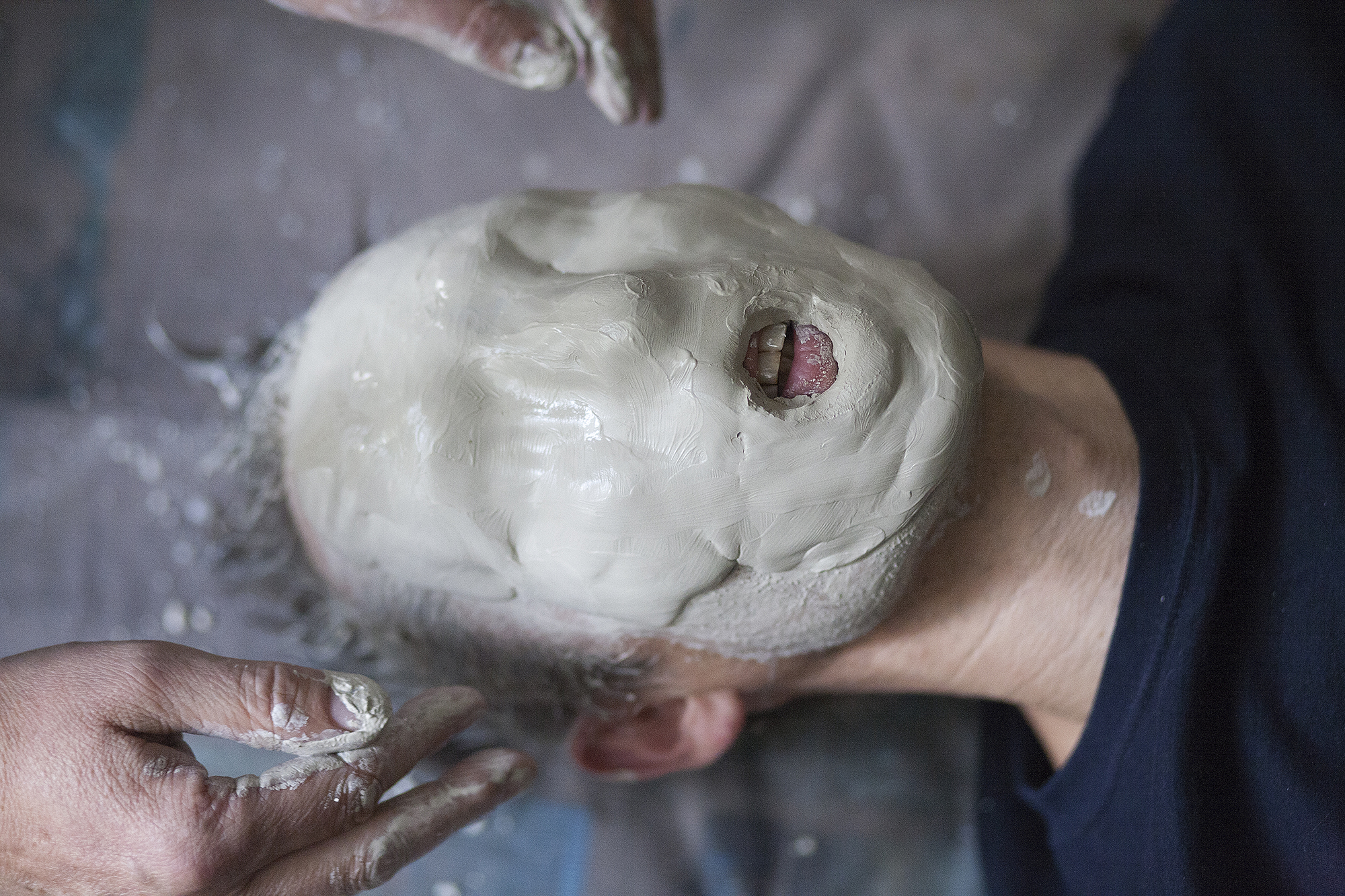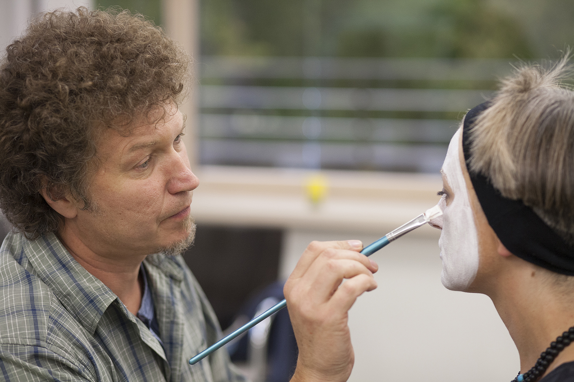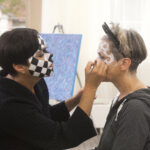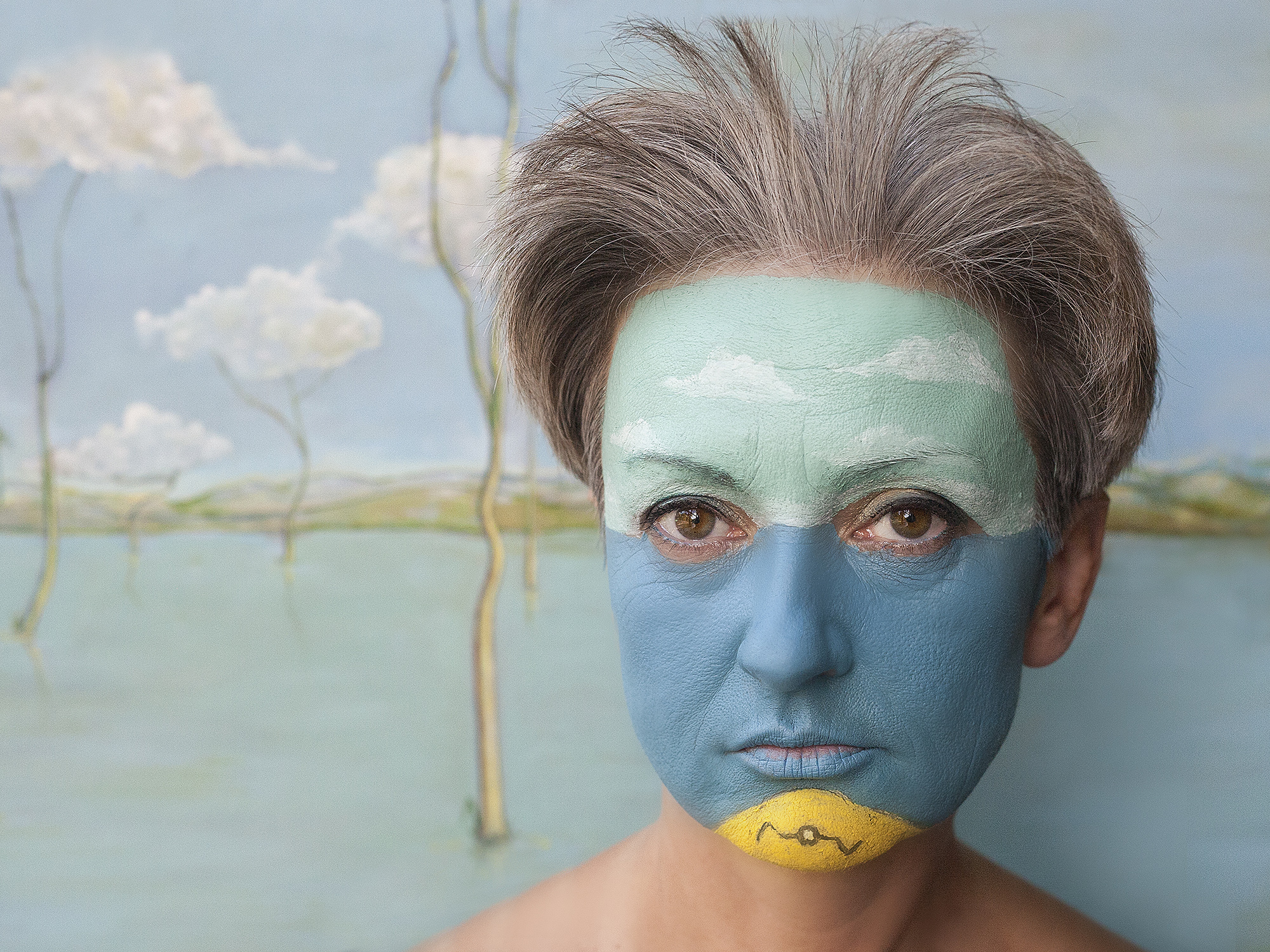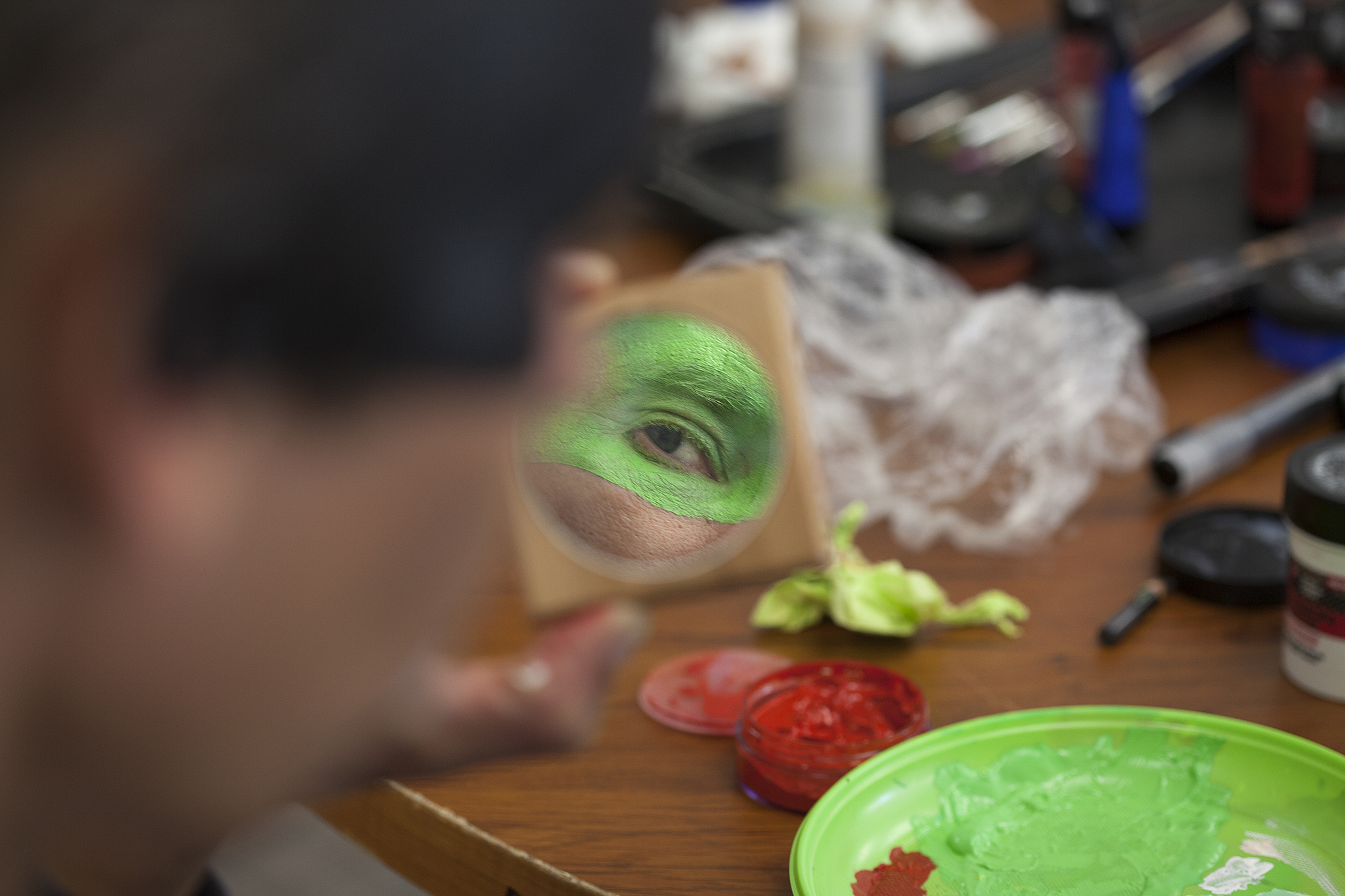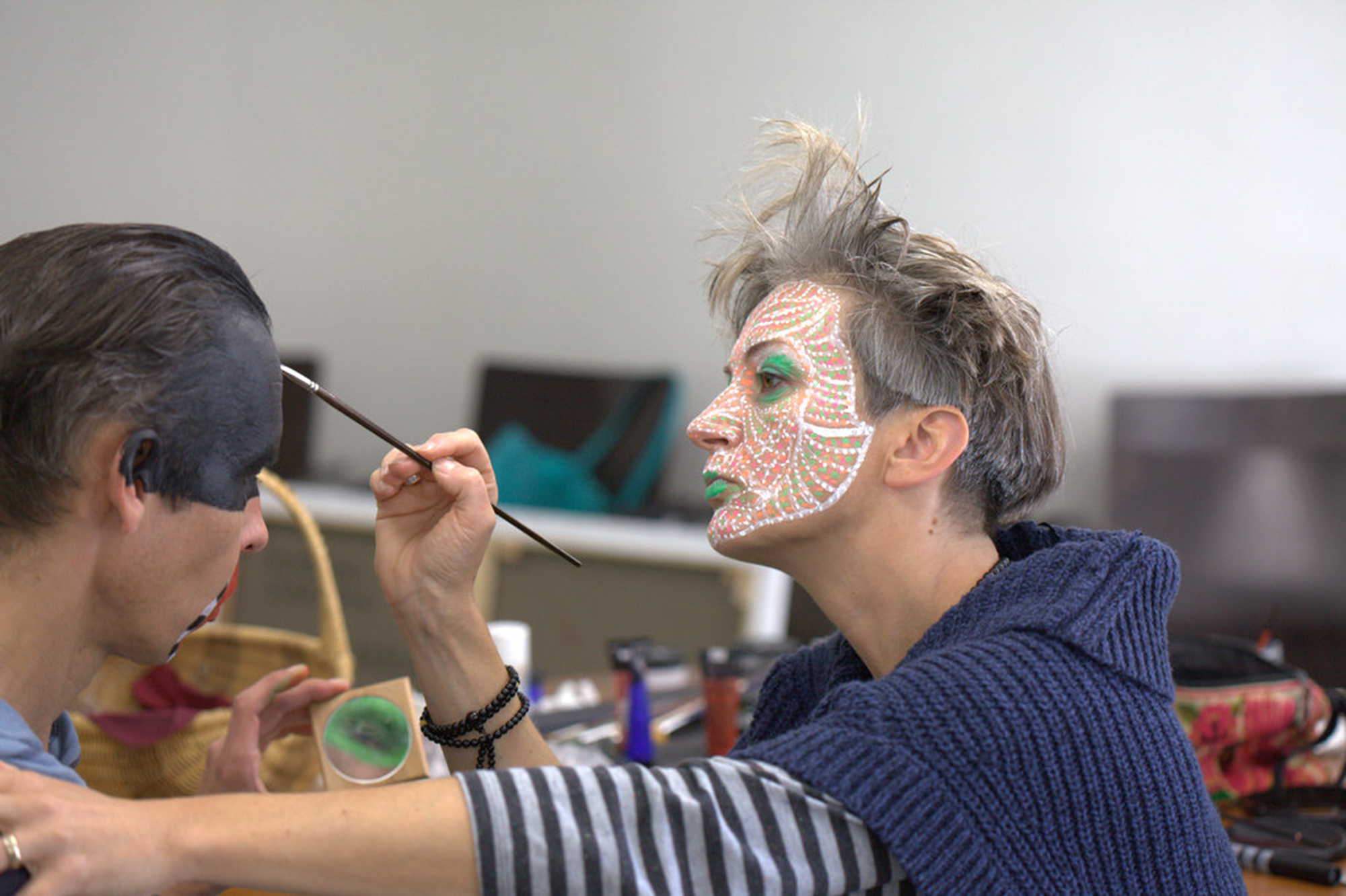 MIGLĖ KOSINSKAITĖ: „Su kūno menu susidūriau pirmą kartą. Jaučiausi truputį nedrąsiai: atrodė nejauku paimti ir liestis prie kito žmogaus, juolab nepažįstamo, veido, o paskui leistis, kad jis pieštų ant tavojo. Bet labai greitai persilaužėme. Visi esame profesionalai, tad į veidus pažvelgėme kaip į drobę – imi ir tapai. Viskas vyko ramiai, tvarkingai, sklandžiai, lyg būtume tai darę šimtą metų. Nors buvo ir nemigo naktų svarstant, ką ryte darysiu, ką piešiu. Visi dirbome įtemptai nuo ryto iki vakaro.“