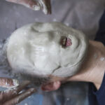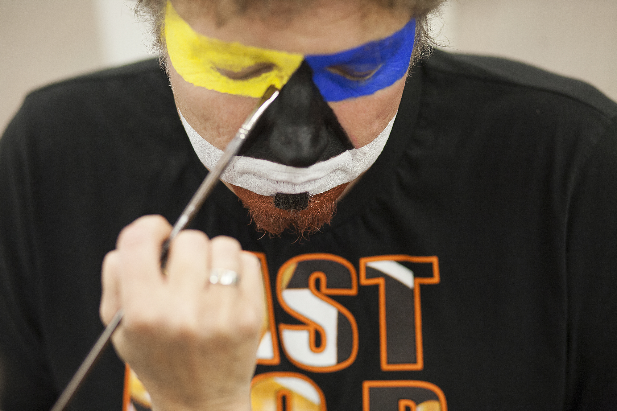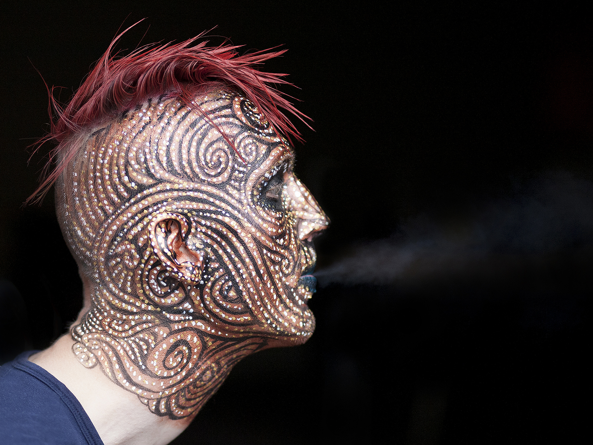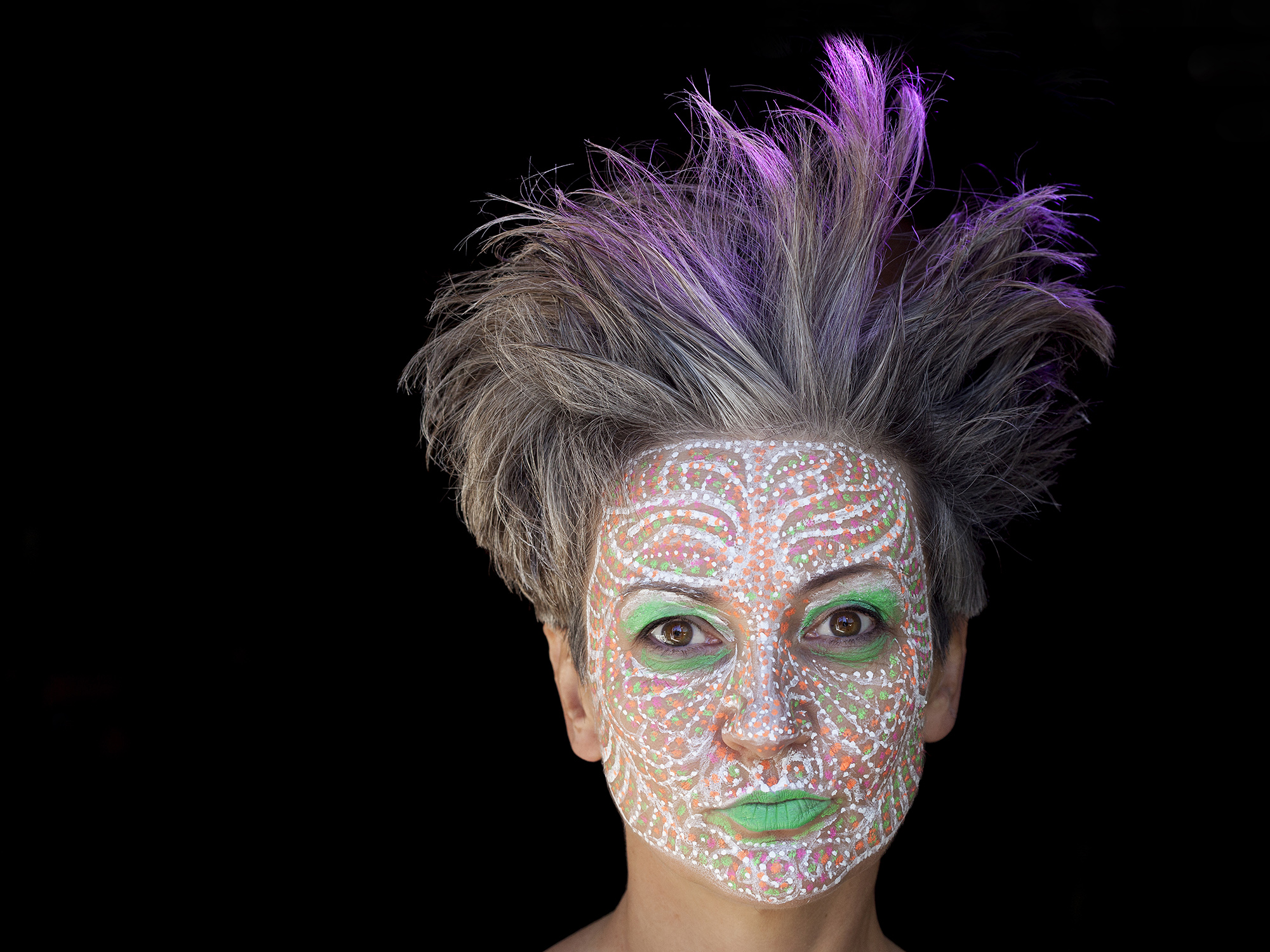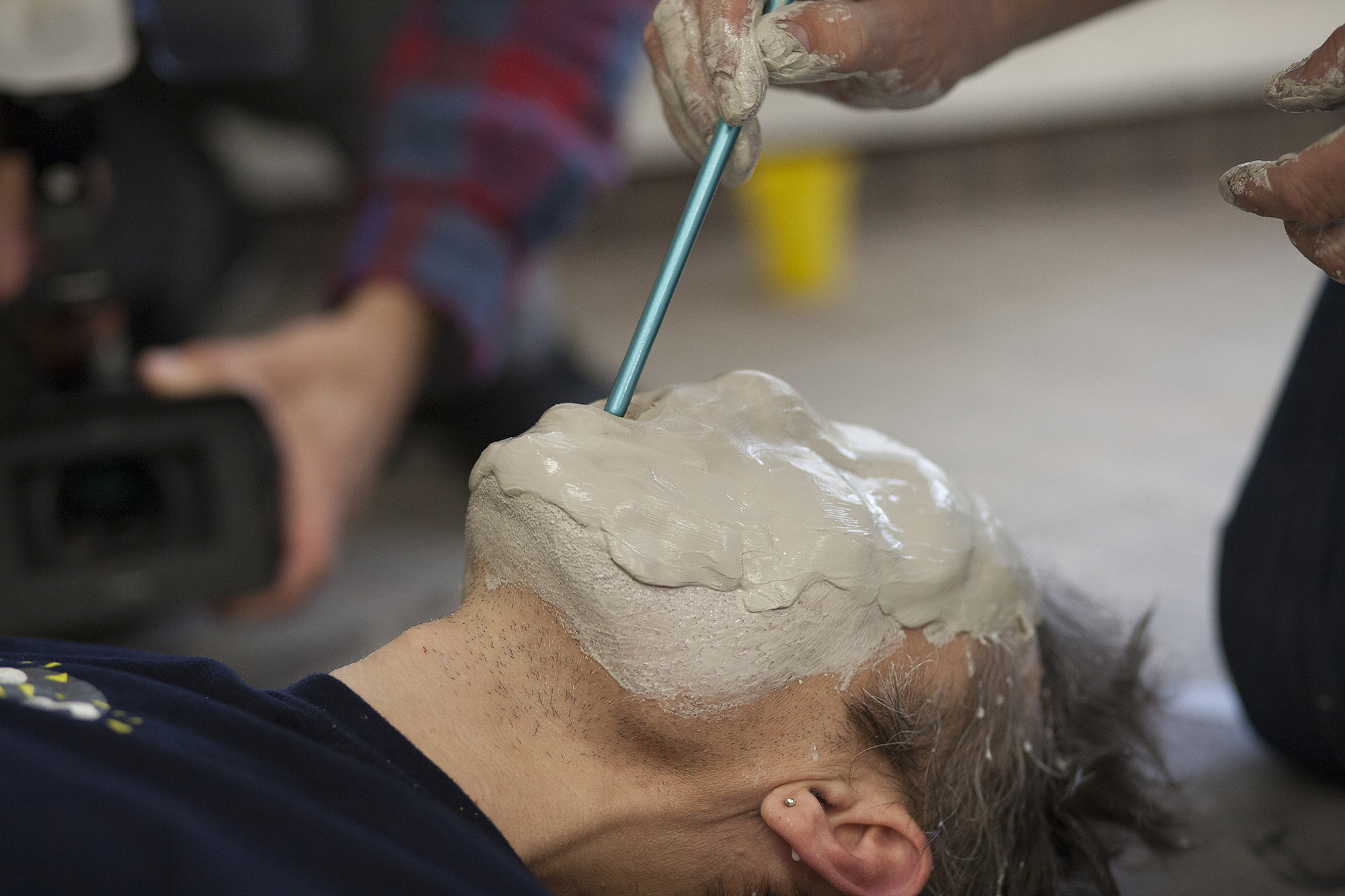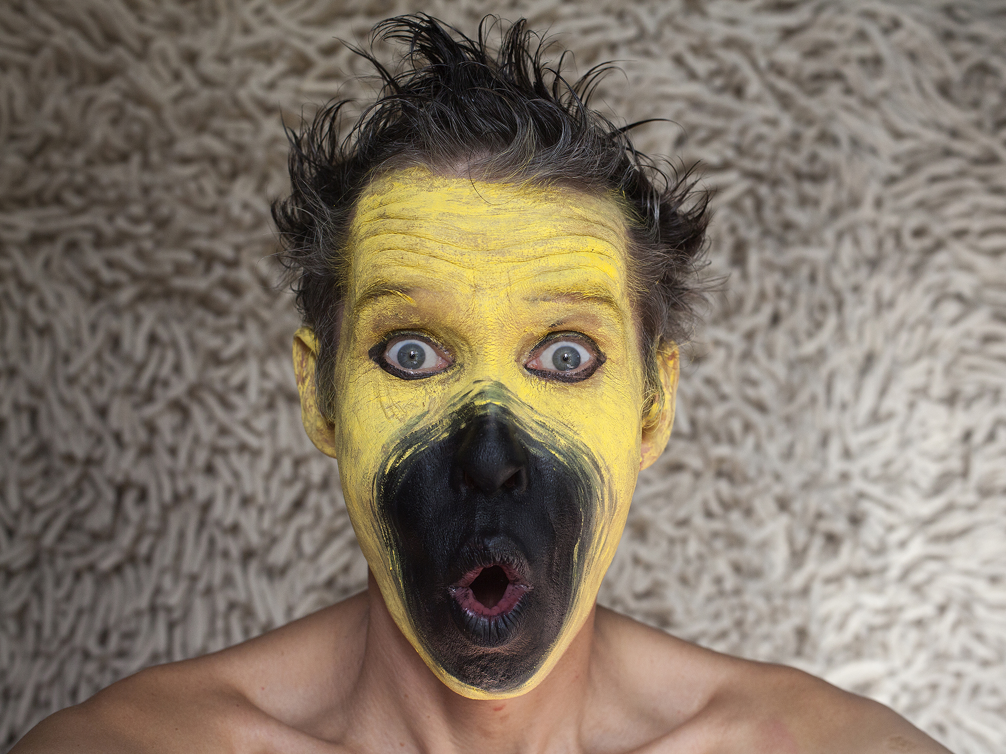 MIGLĖ KOSINSKAITĖ: „Su kūno menu susidūriau pirmą kartą. Jaučiausi truputį nedrąsiai: atrodė nejauku paimti ir liestis prie kito žmogaus, juolab nepažįstamo, veido, o paskui leistis, kad jis pieštų ant tavojo. Bet labai greitai persilaužėme. Visi esame profesionalai, tad į veidus pažvelgėme kaip į drobę – imi ir tapai. Viskas vyko ramiai, tvarkingai, sklandžiai, lyg būtume tai darę šimtą metų. Nors buvo ir nemigo naktų svarstant, ką ryte darysiu, ką piešiu. Visi dirbome įtemptai nuo ryto iki vakaro.“