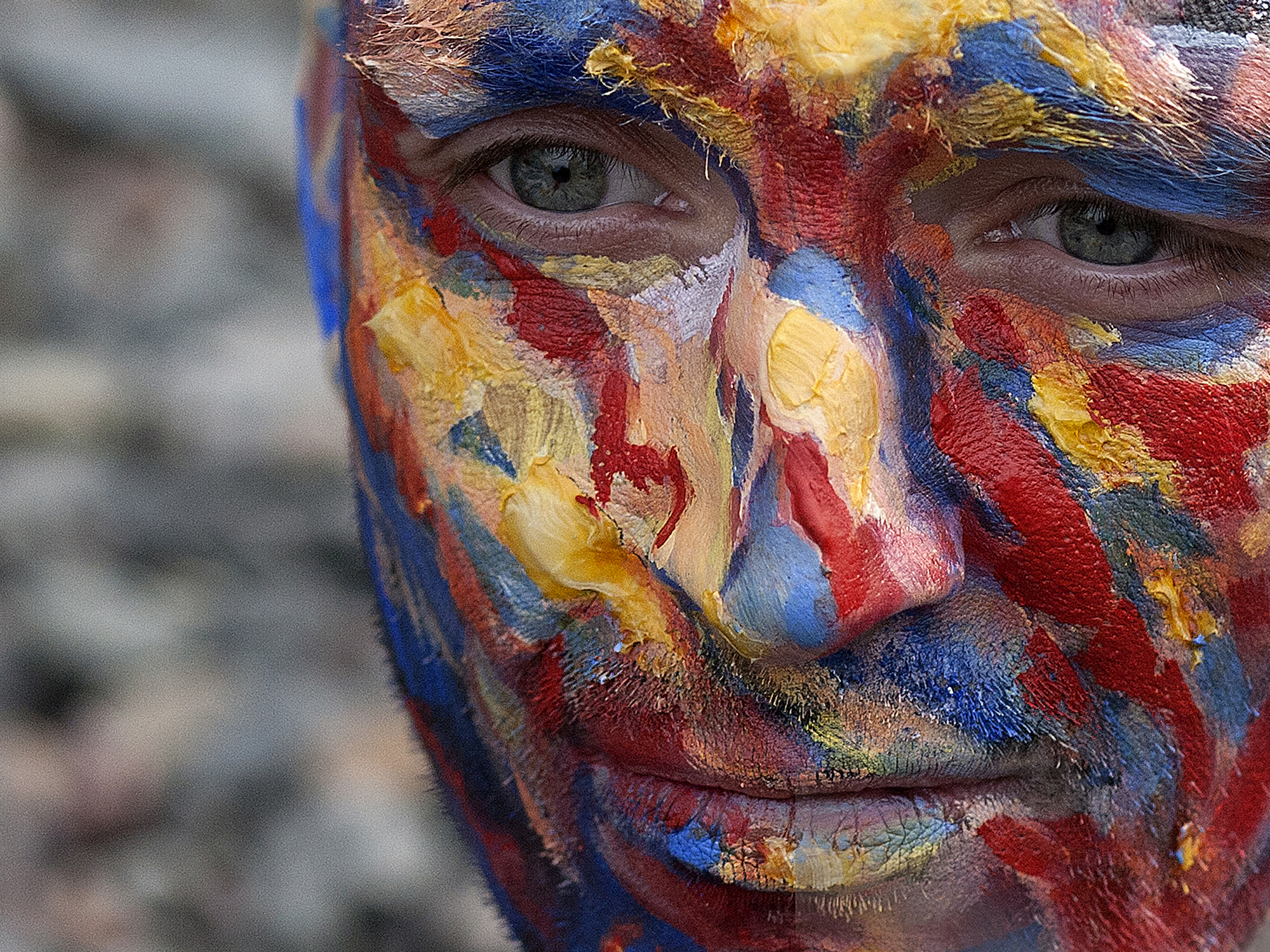 Vaidmuo. Žaidimas. Kaukė. Kūno meno (angl. body art) plenero dalyviai skirtingais žodžiais įvardija savo sukurtus portretus ir jų sukeltas būsenas. Viktorija Vitkauskaitė stebi, kaip sluoksnius dažų ir tuzinus menininkų idėjų sugėrusi oda keitė garsius Lietuvos kūrėjus.
