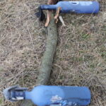 Nuo padangų bokštelio iki smėlio pylimo permesta virvė, o kelio vidurį blokuoja dar dvi nedidelės padangos. Tokioje barikadoje plevėsuoja pritvirtintos Ukrainos vėliavos.