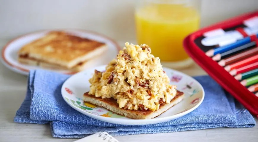 Omletas ant skrebučio su džiovintais pomidorais