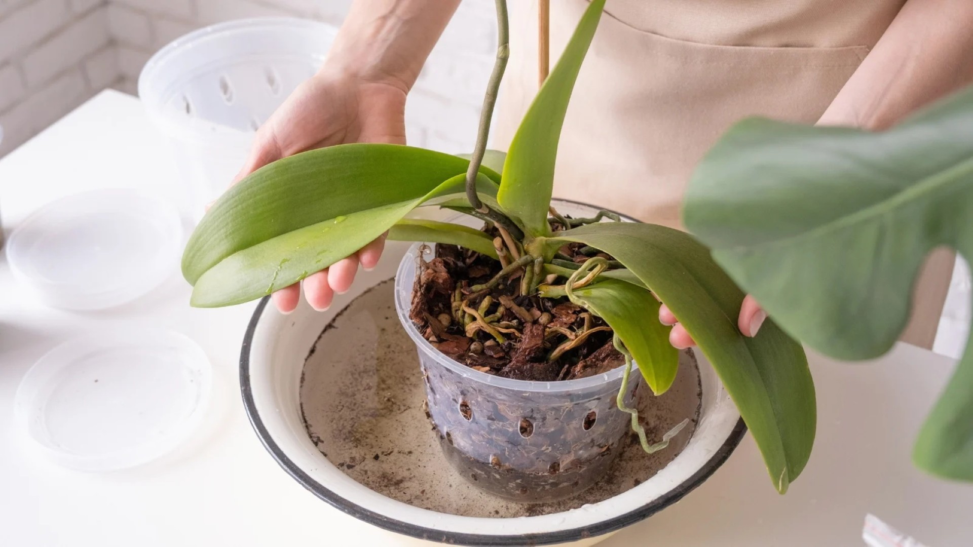 Beje, labai naudinga periodiškai orchidėjų lapus dar ir nuvalyti minkšta drėgna skepeta. To reikia ne tik komfortiškam drėgmės lygiui palaikyti – dulkes ir kitas apnašas pašalinantis lengvas „masažas“ padeda augalams kvėpuoti, gerina fotosintezę.
