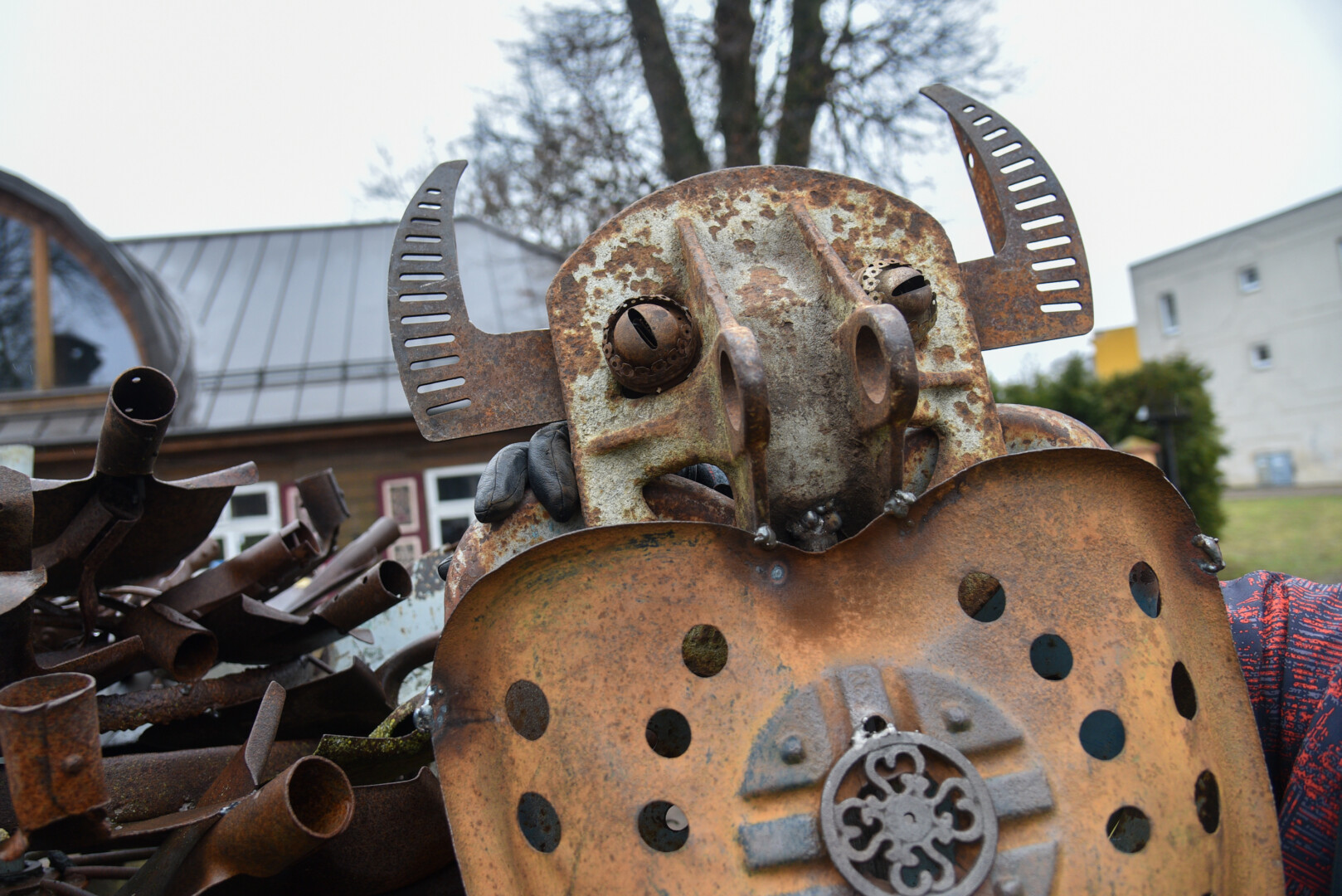 Mat iš įvairiausių metalinių detalių ar buityje nebenaudojamų senų rakandų sukonstruotas mėšlavabalis, ridenantis didžiulį rutulį, surištą iš galybės metalinių kastuvų, gali būti aiškinamas dvejopai.
