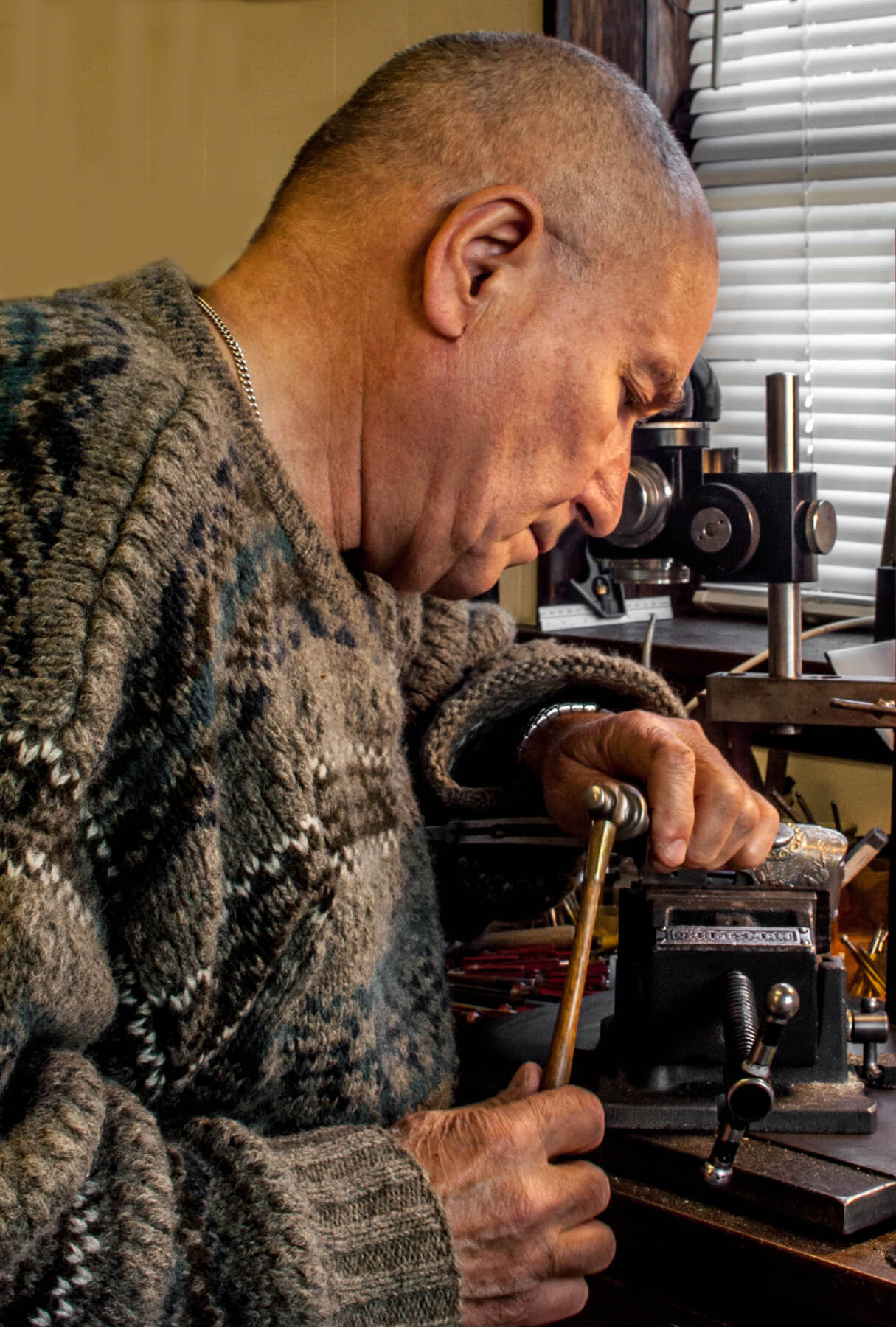 – Anais laikais juvelyro įrankiai labai liūdnai atrodė. Per pažintis geresnės kokybės įrankių įsigydavome medicinos įrankių parduotuvėje sostinės Vilniaus gatvėje. Iki šiol naudoju tuos skalpelius ir pincetus. Kitus kūrėme patys, aš ir dabar darau graviravimo kaltukus.