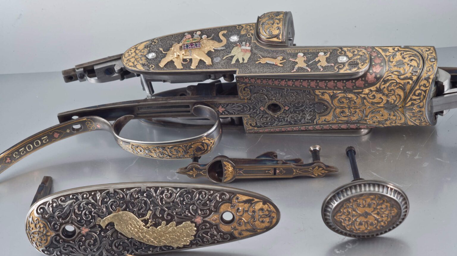 – Temą, vaizduojamus motyvus ir atlikimo techniką suformuluoja užsakovas. Dariau safario seriją, „Indiją“, „Afriką“. Dabar pradėjau „Arabų medžioklės“ temą. Tarp šių serijų buvo ir keletas mažesnių šautuvų. Pradžioje studijuoju ikonografinę medžiagą. Peržiūriu tūkstančius kūrinių nuotraukų, istorinių objektų. Paskui darau eskizus, kol po tam tikro laiko kristalizuojasi dizaino koncepcija. Viskas suderinama su „Westley Richards“ užsakovu. Kai mūsų abiejų idėjos sutampa, pradedu graviruoti. „Indijoje“ panaudojau Mogolų (dinastijos Indijoje – IQ past.) meno motyvus, „Afrikoje“ – Jules’io Verne’o laikų angliškų žurnalų ksilografijos piešinius. Apie „Arabus“ neturiu teisės pasakoti, kol tas šautuvas nebus paviešintas. O tai užtruks porą metų, gal net daugiau.