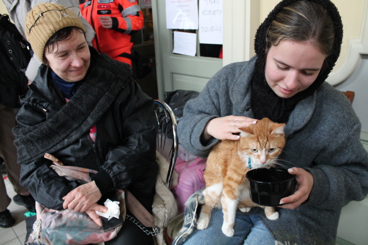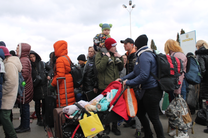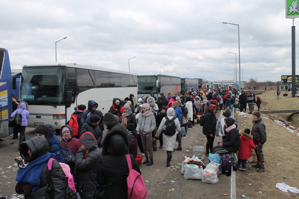 Lenkijos ir Ukrainos pasienyje ties Peremyšliu eilėje matyti beveik vien moterys, vaikai ir paaugliai. Ukrainos vyrai nuo aštuoniolikos iki šešiasdešimties metų įtraukti į karo rezervininkų sąrašus. Eilėje šąlančias moteris bei vaikus humanitarinių organizacijų savanoriai vaišina arbata, sumuštiniais, kiek apšilti galima prie kelių degančių laužų.