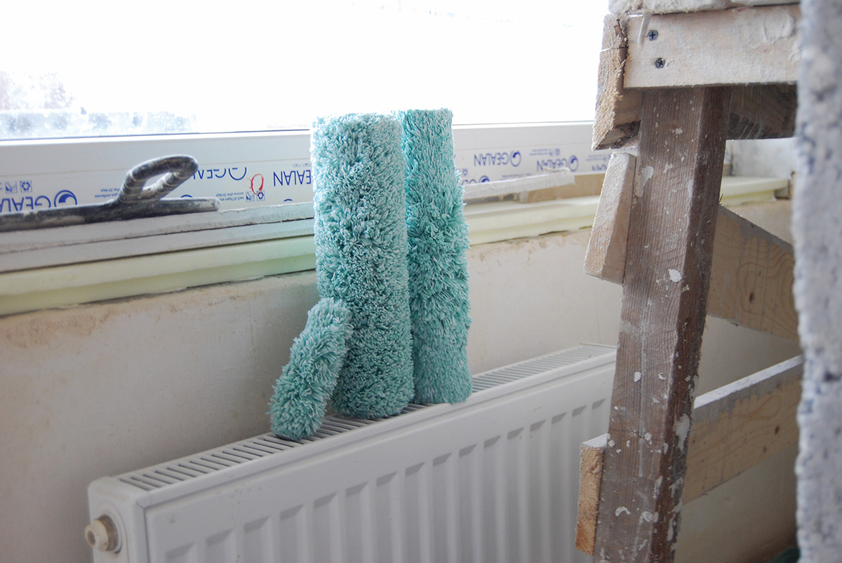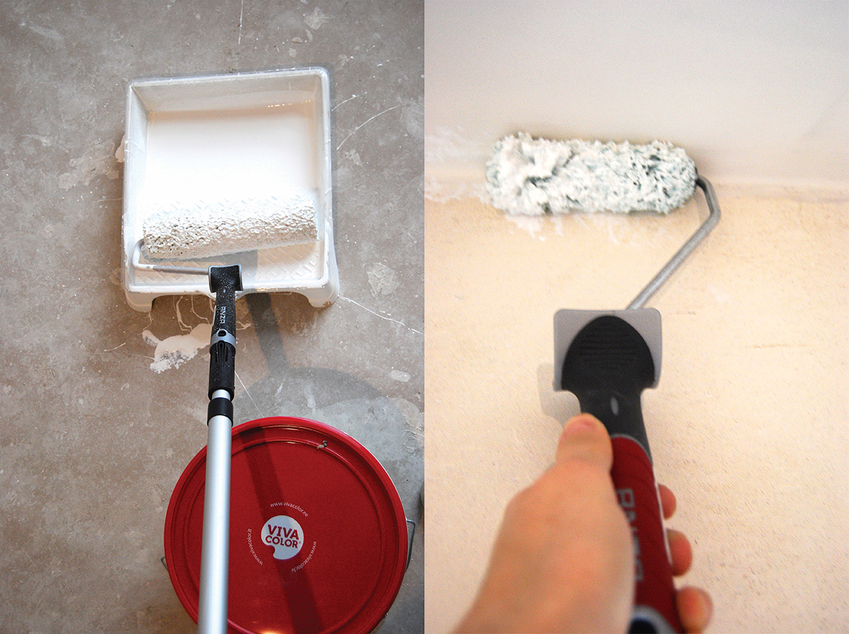 „Ėmiau du didesnius volelius, skirtus atviriems plotams dažyti, po vieną kiekvienai spalvai – pilkoms sienoms ir baltoms luboms, – dėstė naujakurė. – Pradėjus dažymą, paaiškėjo, kad geriau būčiau pirkusi bent dvigubai tiek. Tegu dažymo įrankius ir lengva išplauti, bet kol juos išmazgoji… Patogiau turėti atsarginių, kad nereikėtų stabdyti darbų“.