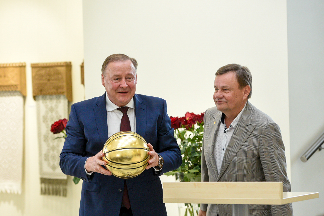 Lietuvos krepšinio federacijos prezidentas Vidas Gedvilas klubo vadovui Alvydui Bieliauskui įteikė aukso spalvos kamuolį ir palinkėjo kitais metais tapti šalies čempionais.