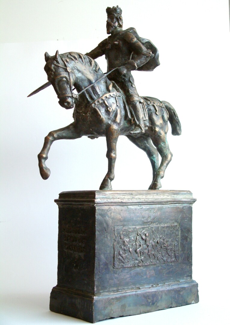 Karalių skulptorius pavaizdavo raitą ant žirgo.