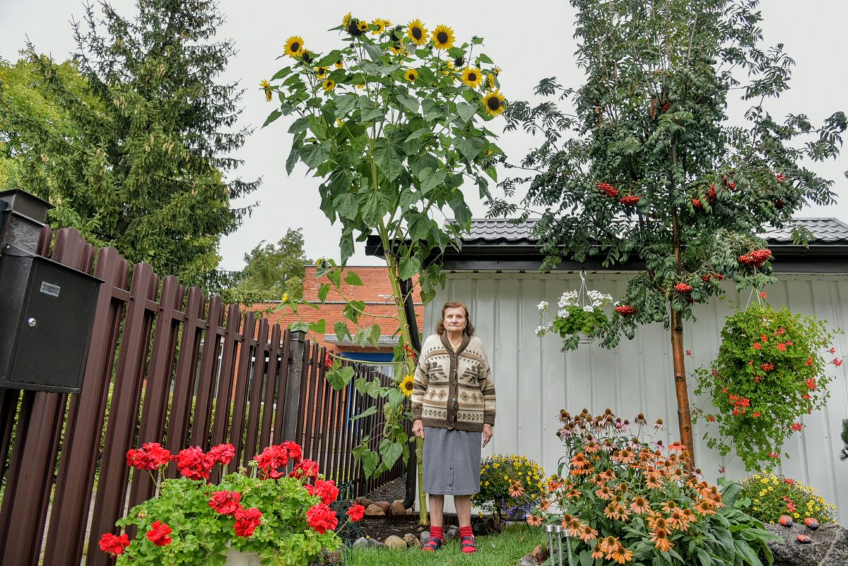 Ukmergės gatvėje gyvenanti panevėžietė, dar pavasarį sumaniusi kieme pasisodinti dekoratyvinių saulėgrąžų, dabar džiaugiasi ypatingu jų derliumi. Nors sėklų augintojai žadėjo, kad gėlės užaugs iki keturiasdešimties centimetrų, moters kieme pražydusi gražuolė – įspūdingo dydžio, ūgiu jau lenktyniaujanti su greta augančiu šermukšniu.