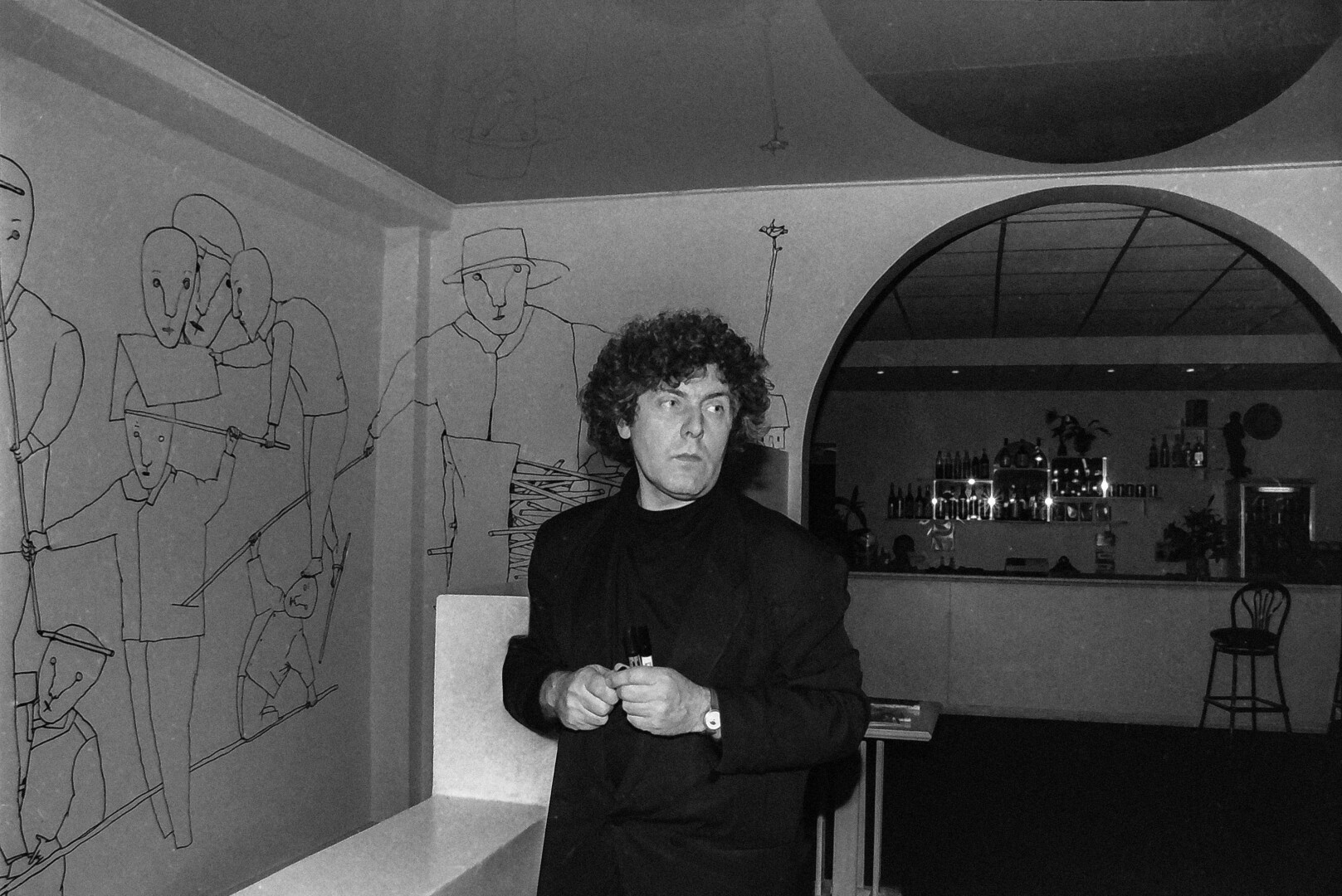 O A. Aleksandravičiaus bičiulis, menininkas S. Eidrigevičius išpiešė galinę galerijos sieną.