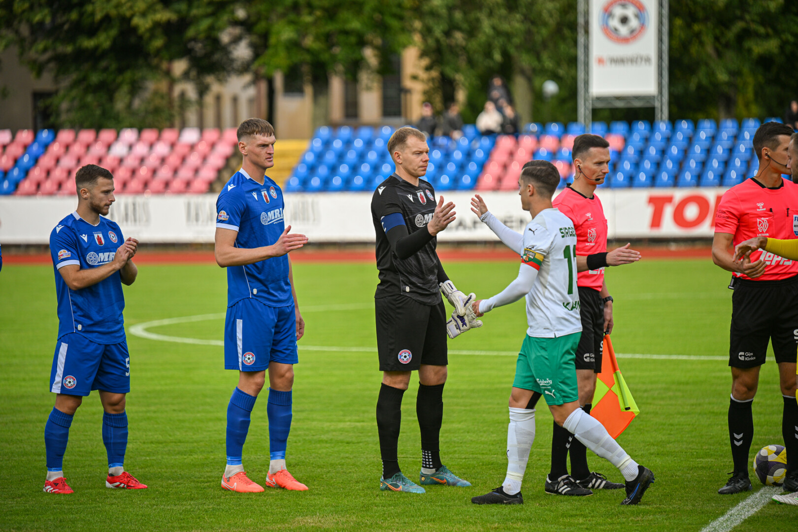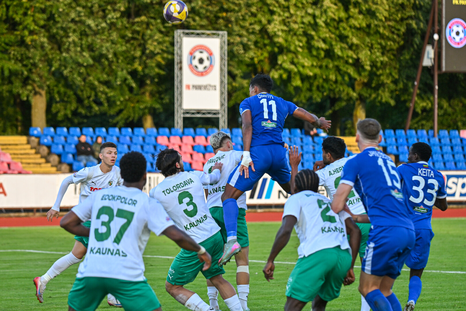 Kai jau atrodė, kad komandos pasidalins po tašką, paskutinę minutę E. Veliulis puikiai suklaidino varžovus ir tiksliu smūgiu į tolimąjį vartų kampą nuginklavo žalgiriečių vartų sargą.