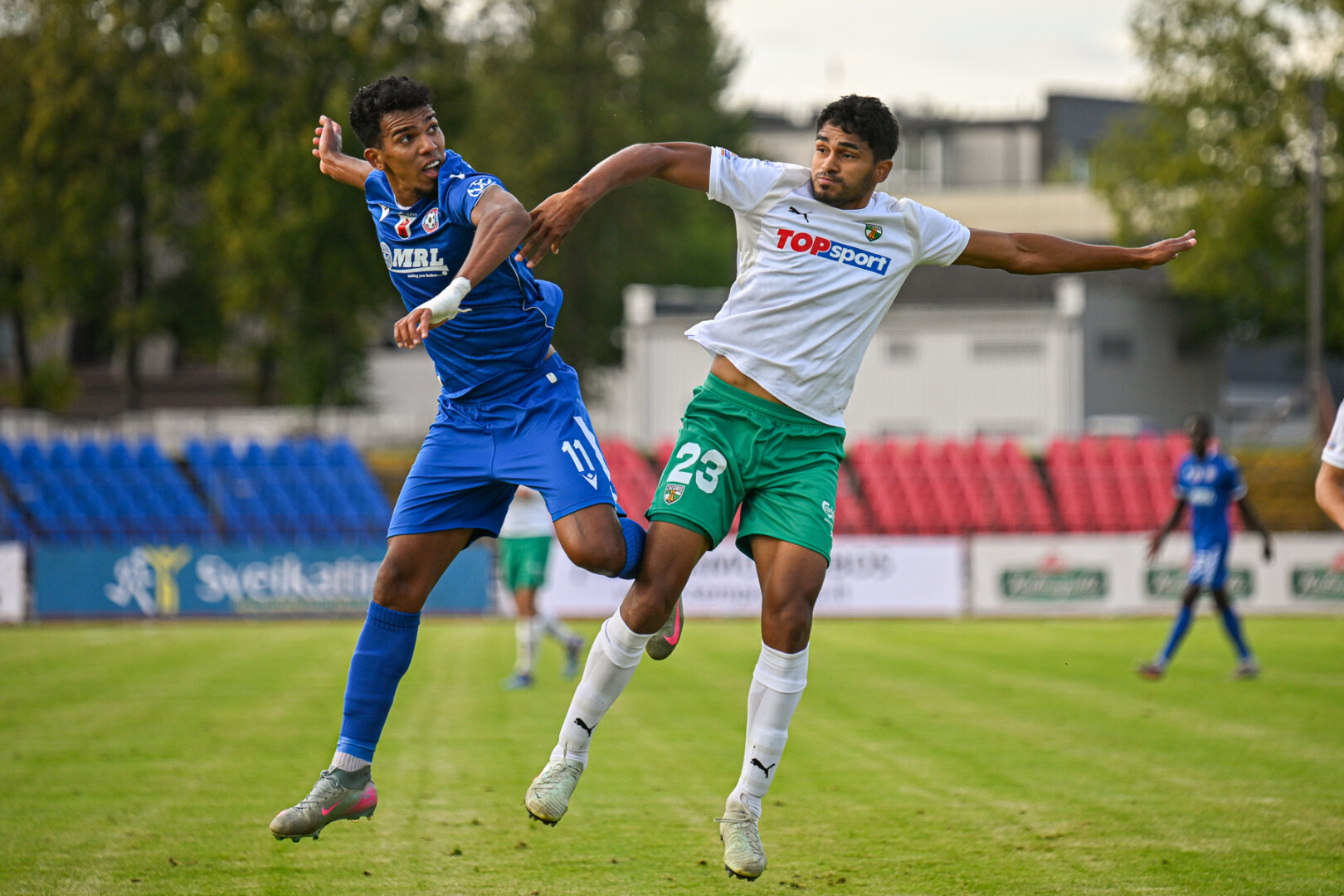 Per likusią pirmojo kėlinio dalį komandoms sunkiai sekėsi regzti pavojingas atakas prie varžovų vartų. Žalgiriečių gretose laimę pabandė Romualdas Jansonas ir Amine’as Benchaibas, tiesa, su jų smūgiais susitvarkė V. Černiauskas. Aikštės šeimininkų ekipoje kartą iš toli kamuolį virš vartų pasiuntė Issacas Asante.