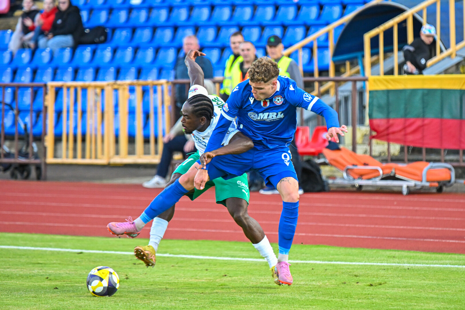 Jau 9-ąją minutę progą smūgiui susikūrė ir į tolimąjį vartų kampą pykštelėjo svečių futbolininkas Fabienas Ourega, bet puikiu šuoliu komandą nuo nemalonumų išgelbėjo Vytautas Černiauskas.