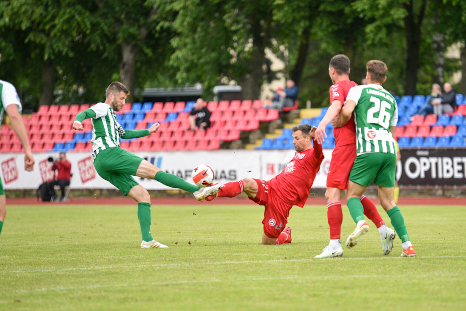 24-ąją susitikimo minutę panevėžiečiai turėjo gerą progą išsiveržti į priekį. Ariagneris Smithas atliko perdavimą U. Diallo, bet šiam futbolininkui šiek tiek pritrūko tikslumo.