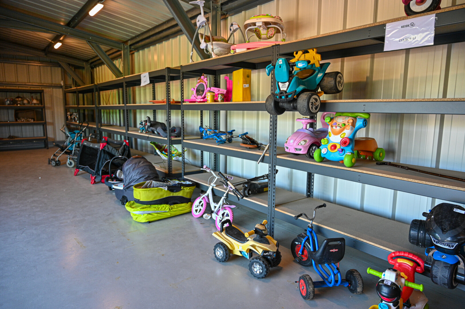 Daiktų keitimosi stotelė tuščia nebūna. Daugiausia į ją atvežama vaikiško transporto – vežimėlių kūdikiams ir vaikams, automobilio kėdučių, dviratukų, paspirtukų, įvairių pasispiriamų mašinėlių. Beveik visi – dar tikrai neblogos būklės, tik sėsk ir važiuok. Gali reikėti nebent paveržti stabdžius ar prisipūsti padangas.