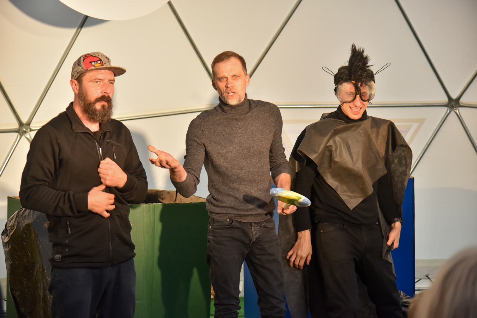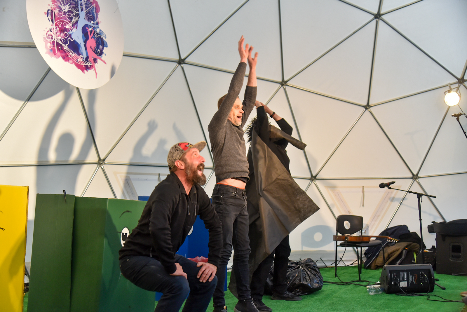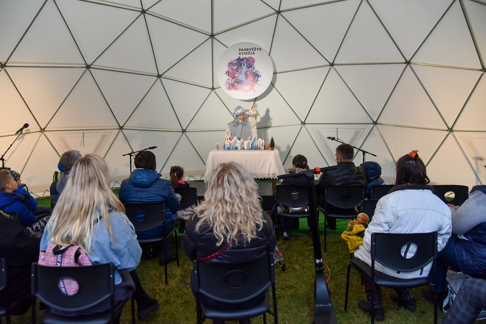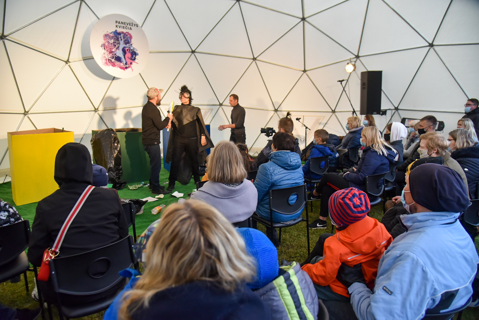 Nuo vėjo saugančio kupolo scenoje vienas po kito buvo rodomi spektakliai – ir vaikams, ir jaunimui. O renginio akcentu tapo pirmą kartą Panevėžyje pristatytas Pojūčių teatro iš Klaipėdos spektaklis visiems „Akmuo, vanduo, gėluonis“.