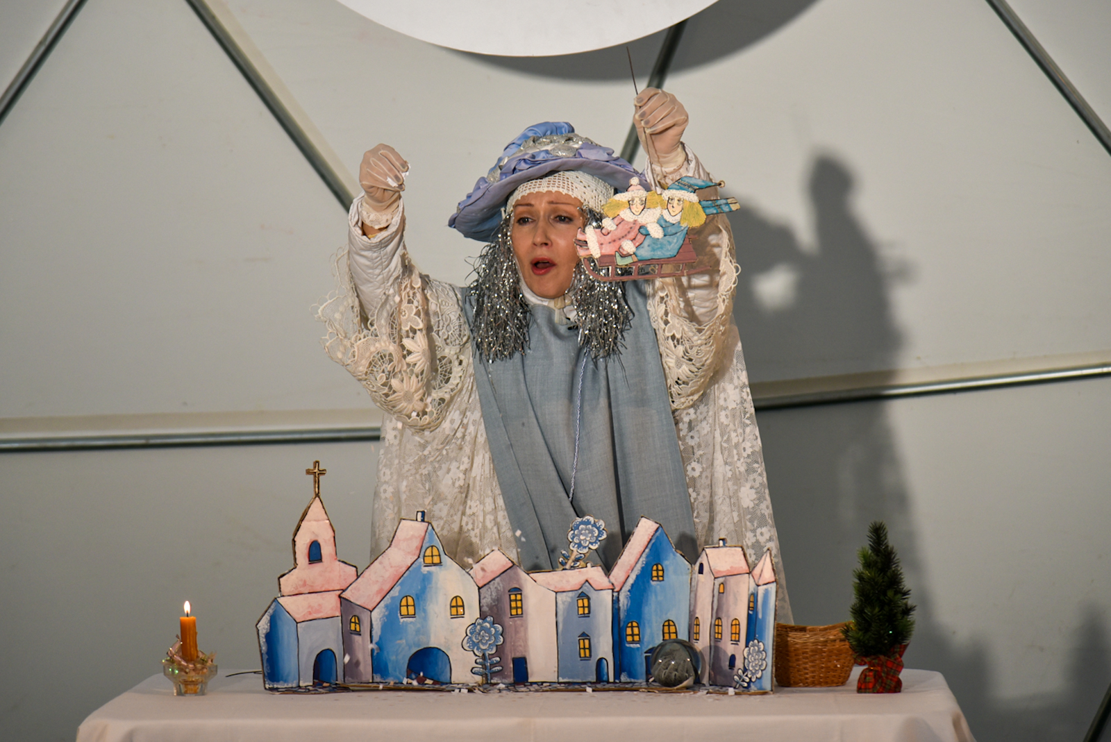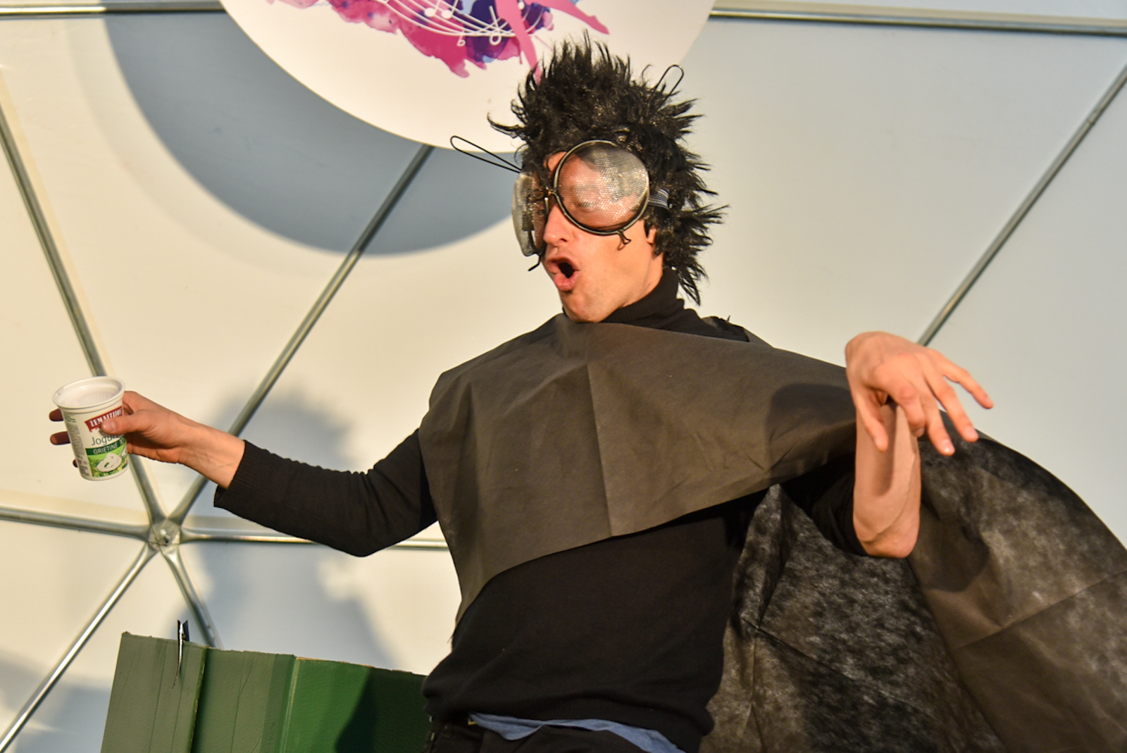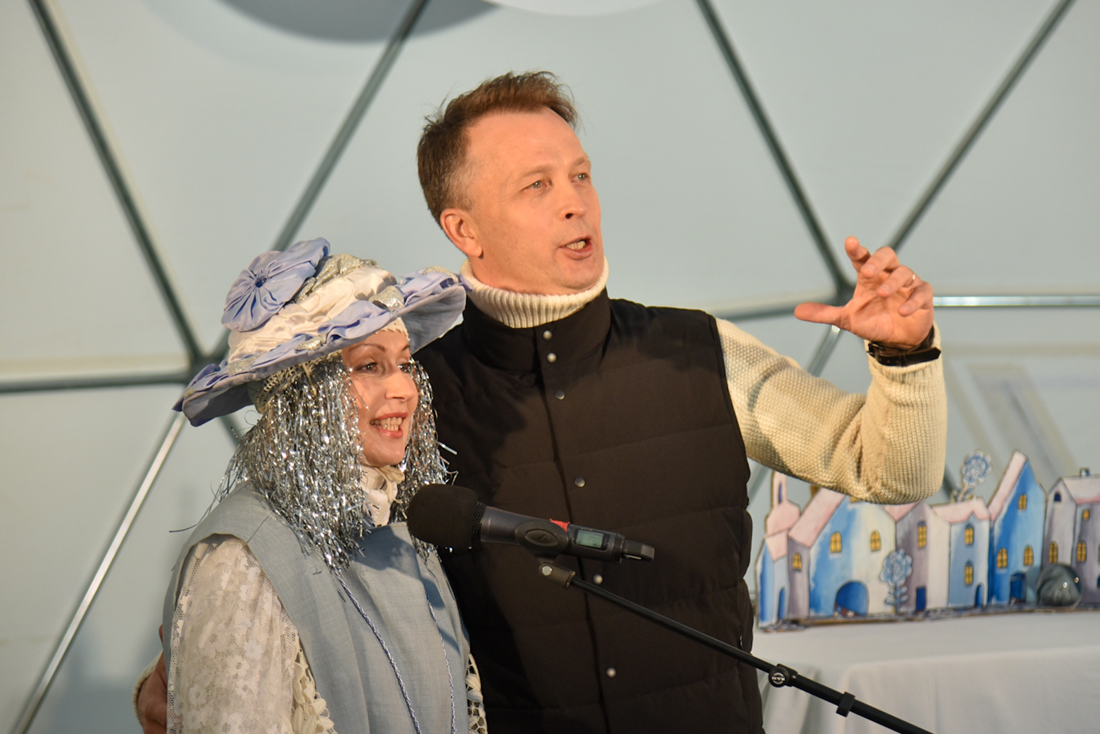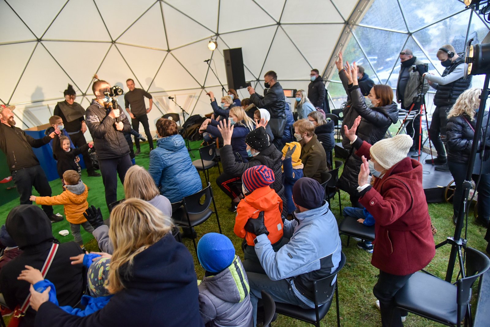 Nuo vėjo saugančio kupolo scenoje vienas po kito buvo rodomi spektakliai – ir vaikams, ir jaunimui. O renginio akcentu tapo pirmą kartą Panevėžyje pristatytas Pojūčių teatro iš Klaipėdos spektaklis visiems „Akmuo, vanduo, gėluonis“.