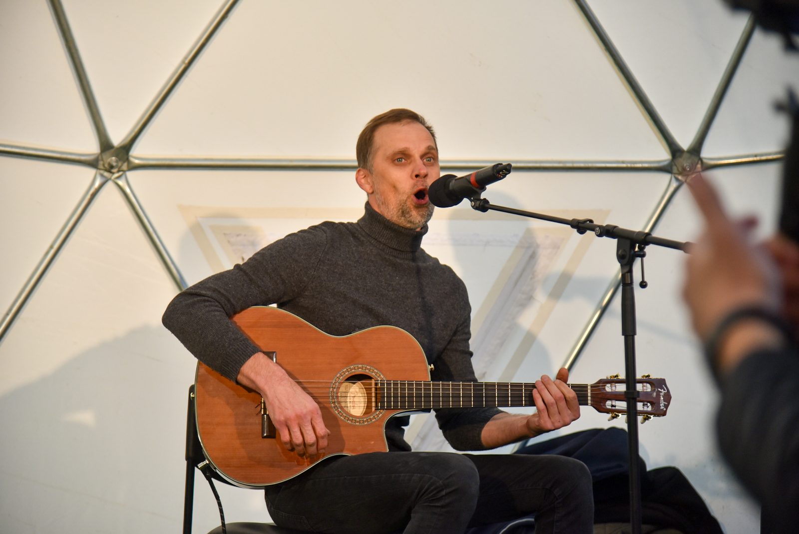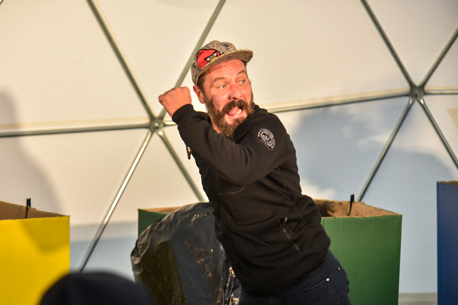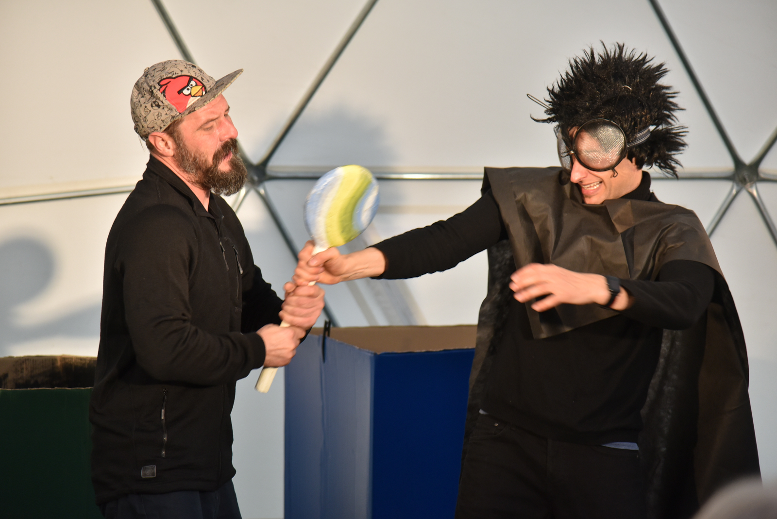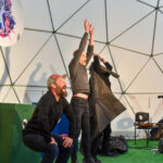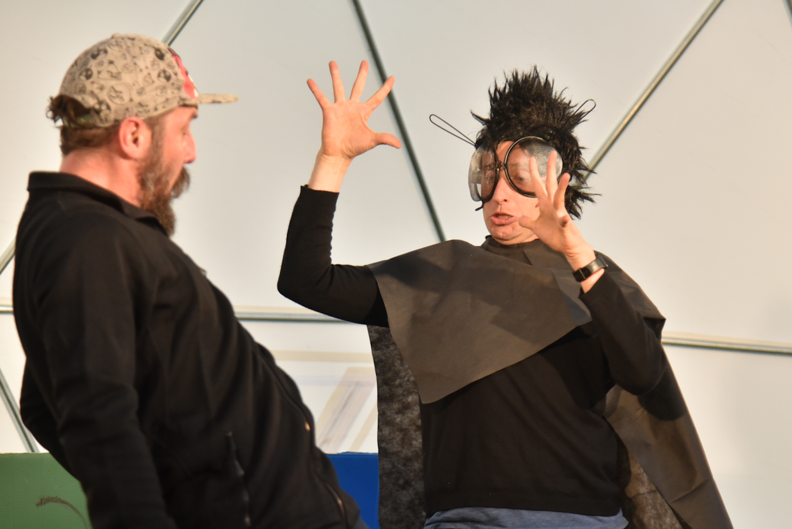 Nuo vėjo saugančio kupolo scenoje vienas po kito buvo rodomi spektakliai – ir vaikams, ir jaunimui. O renginio akcentu tapo pirmą kartą Panevėžyje pristatytas Pojūčių teatro iš Klaipėdos spektaklis visiems „Akmuo, vanduo, gėluonis“.