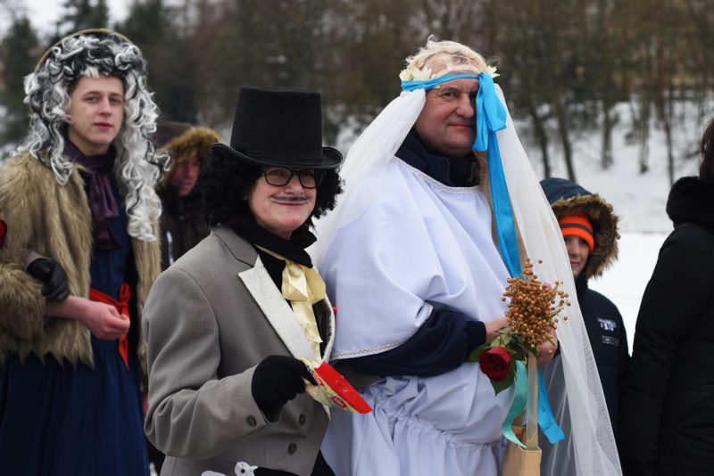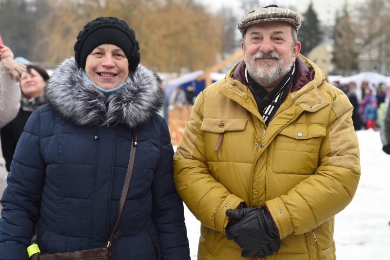 Ponia Irena su vyru buvo ne tik Užgavėnių linksmybių stebėtojai, bet ir dalyviai. Jie sudalyvavę persirengėlių eisenoje nusimetė kaukes, tačiau gera nuotaika jų ir toliau neapleido.