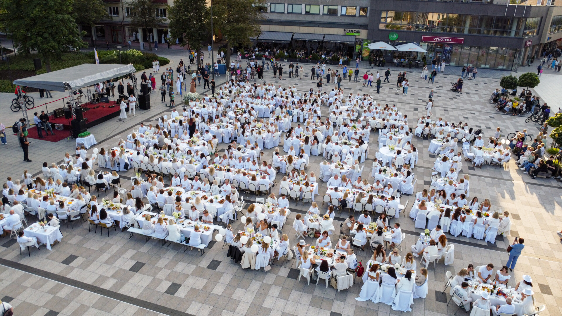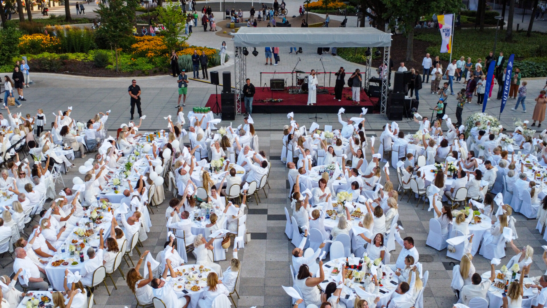 Šimtai panevėžiečių pirmą kartą susirinko prie bendro stalo į baltąją vakarienę.
