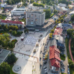 Panevėžio Laisvės aikštė penktadienio vakarą suspindo balta spalva.