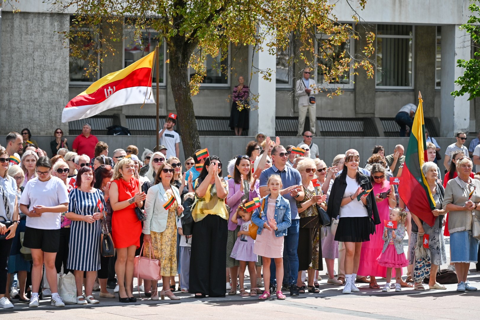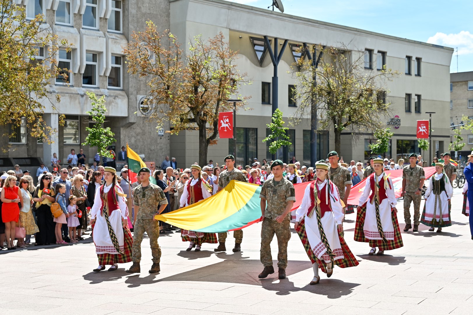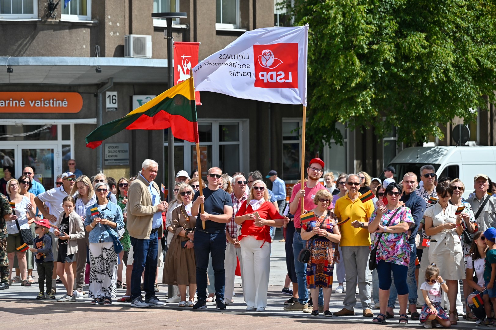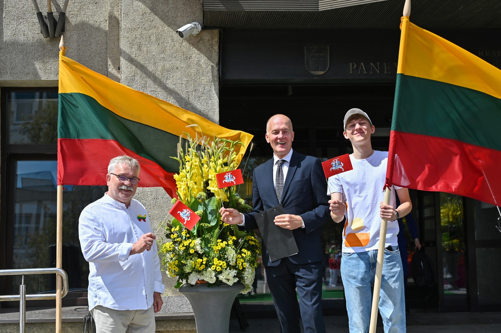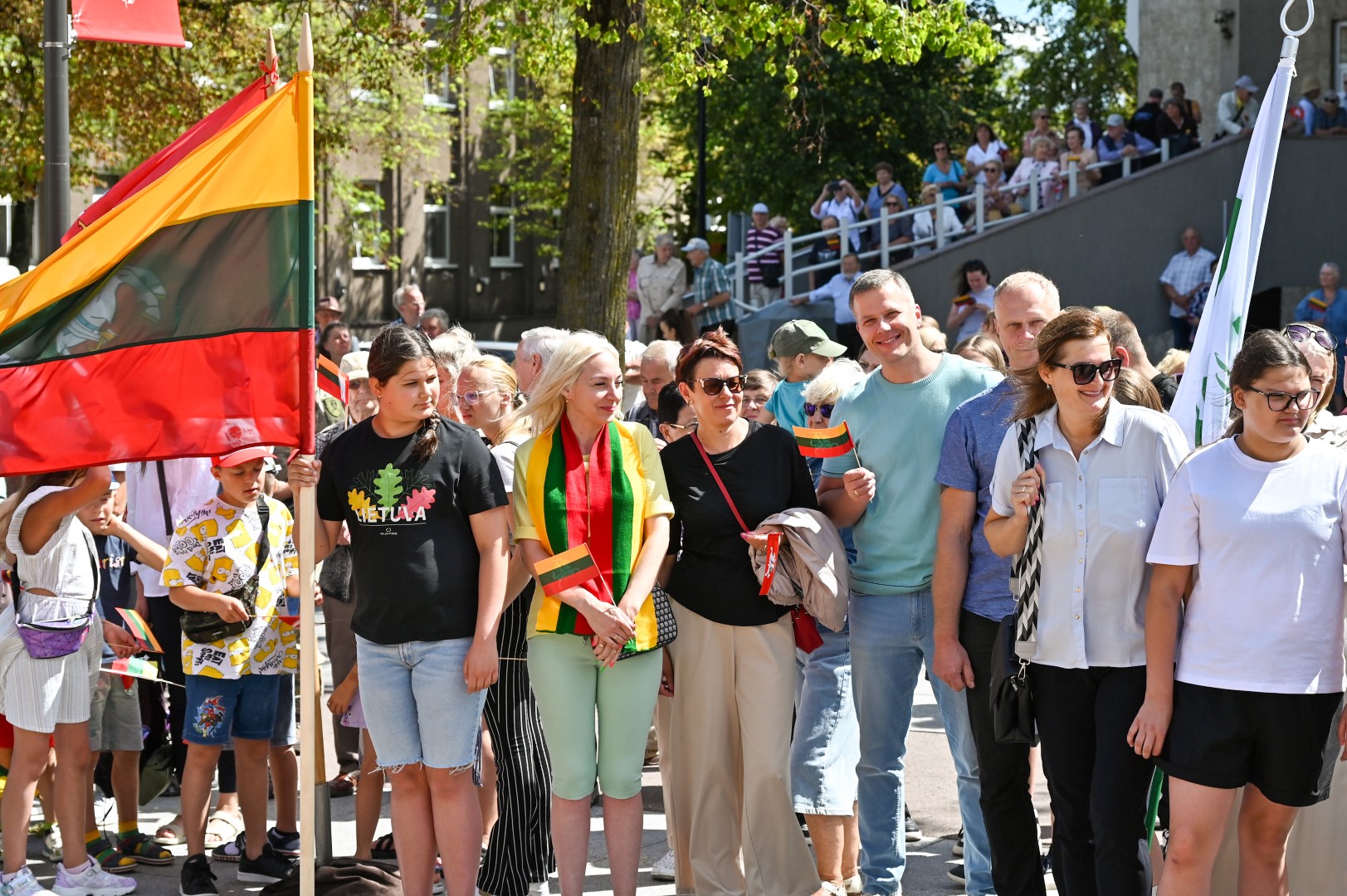 Vidurdienį Laisvės aikštėje, prie miesto Savivaldybės iškilmingai iškelta Trispalvė.